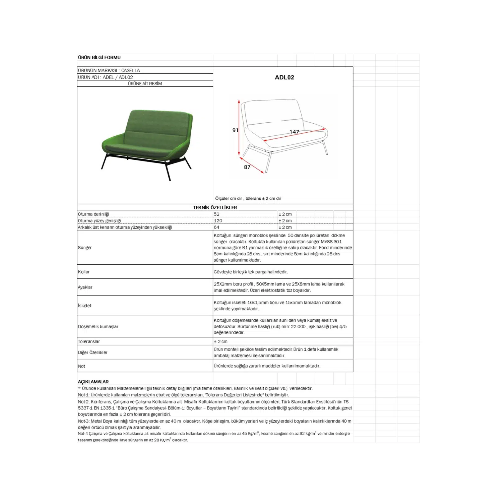 Siyah boyalı ayak yapısı, sağlamlığı ve dengeli duruşu sayesinde yoğun kullanıma uygundur. Casella kanepe modelleri arasında modern tasarımı, dayanıklı yapısı ve fiyat–performans avantajıyla öne çıkan bu model; ofisler, bekleme alanları, lobi alanları, yönetici odaları, klinikler ve showroomlar için ideal bir tercihtir.