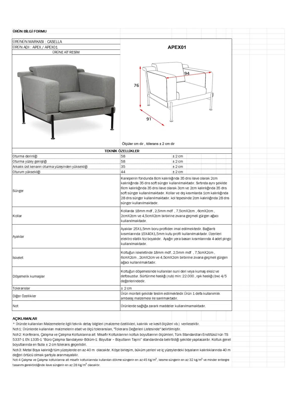 Casella Apex Tekli Ofis Kanepesi (APEX 01), lobi ve bekleme alanları, resepsiyonlar ve yönetici misafir köşeleri için tasarlanmış modern bir tekli ofis kanepesi / berjerdir. Yüksek yoğunluklu sünger, sağlam iskelet ve kolay temizlenebilir döşeme ile uzun oturumlarda konfor sunar; minimal çizgileriyle mekâna prestijli ve profesyonel bir görünüm katar.
