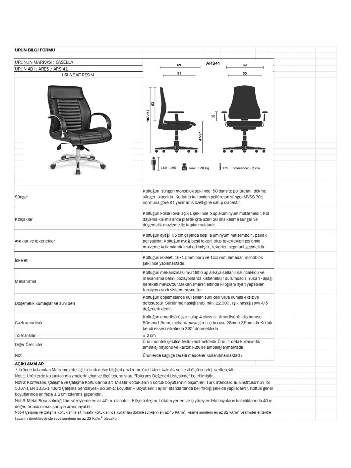 | Döşeme | Gerçek deri / suni deri / leke tutmaz kumaş; file sırt opsiyonu |