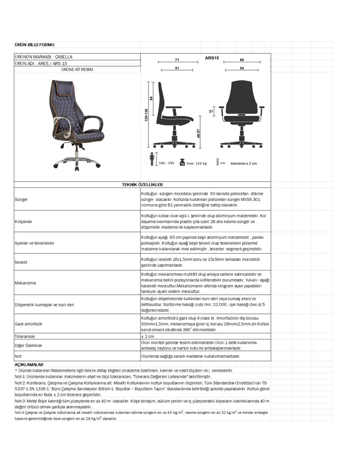 Casella Ares Yönetici Koltuğu (ARS 15), yönetici ofisleri ve üst düzey çalışma alanları için tasarlanmış modern bir yönetici koltuğudur. Ergonomik sırt formu, ayarlanabilir mekanizma ve kaliteli döşemesiyle uzun çalışma saatlerinde konfor sunar; zarif çizgileriyle mekâna prestij ve profesyonel bir görünüm katar.