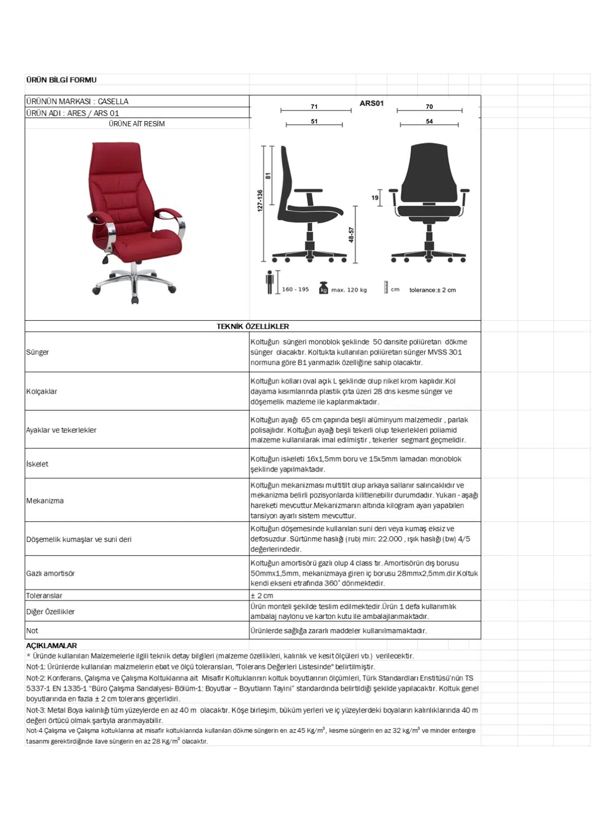 Casella Ares Yönetici Koltuğu (ARS 01), yönetici ofisleri ve üst düzey çalışma alanları için tasarlanmış modern bir yönetici koltuğudur. Ergonomik sırt formu, ayarlanabilir mekanizma ve kaliteli döşemesiyle uzun çalışma saatlerinde konfor sunar; zarif çizgileriyle mekâna prestij ve profesyonel bir görünüm katar.