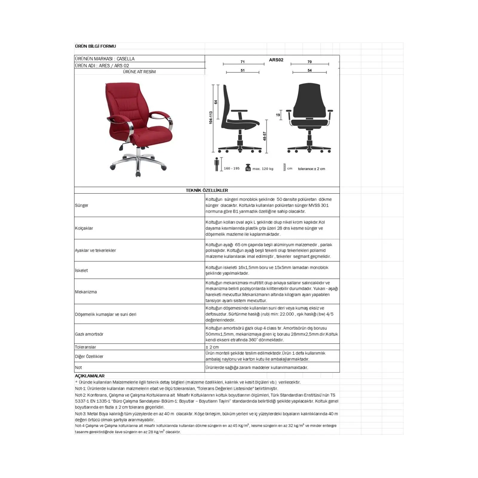 Mekanizma: Multi tilt (çok kademeli yatma ve kilitleme sistemi)