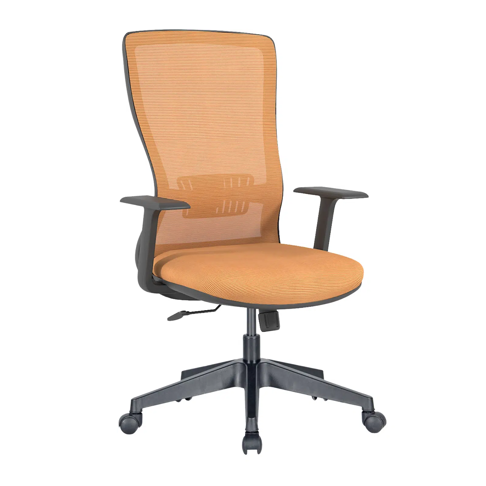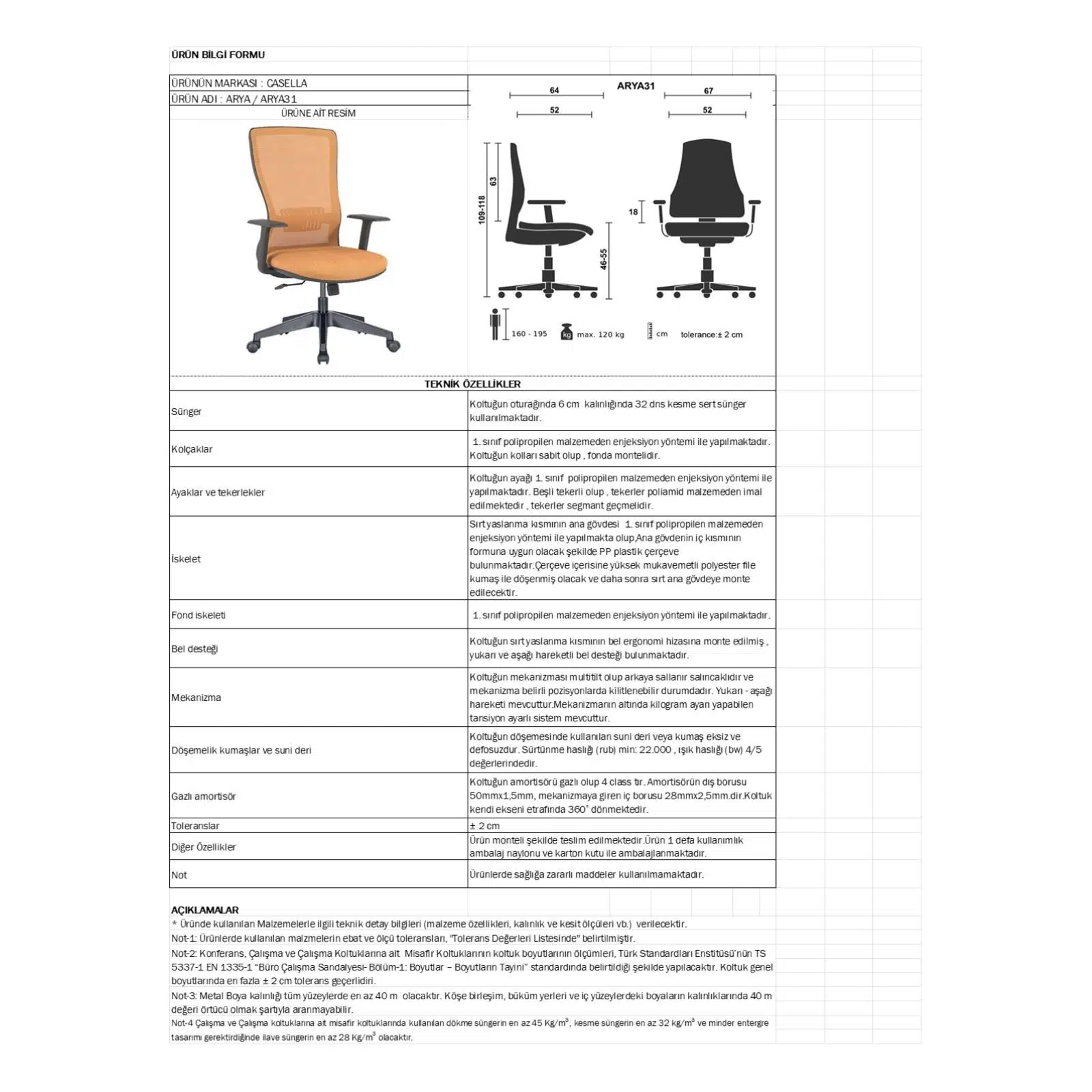 Sabit kolçaklar dengeli ve stabil bir oturma pozisyonu sunarken, entegre bel desteği omurganın doğal eğrisini destekleyerek uzun süreli çalışmalarda bel ve sırt yorgunluğunu azaltmaya yardımcı olur. Dayanıklı plastik ayak yapısı hafiflik sağlarken aynı zamanda uzun ömürlü kullanım sunar.