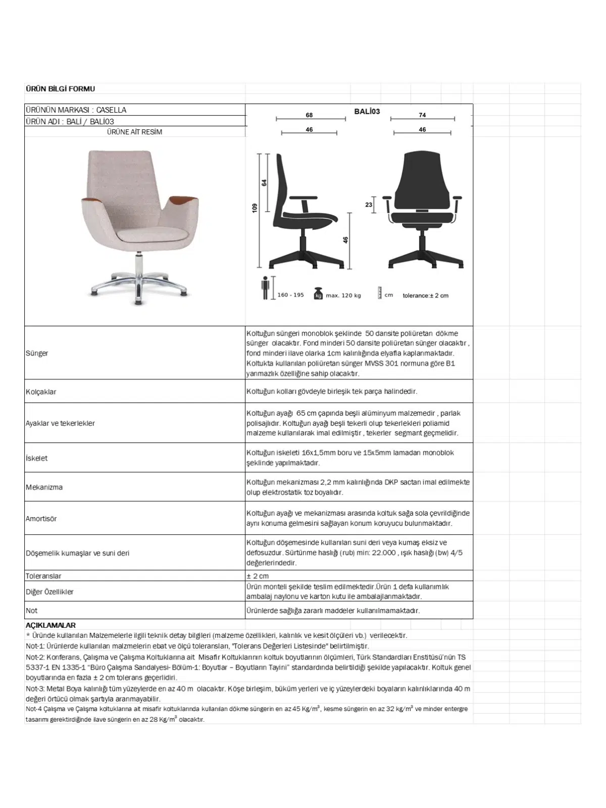 | Mekanizma | Amortisörlü yükseklik Ve sırt eğimi ayarı |