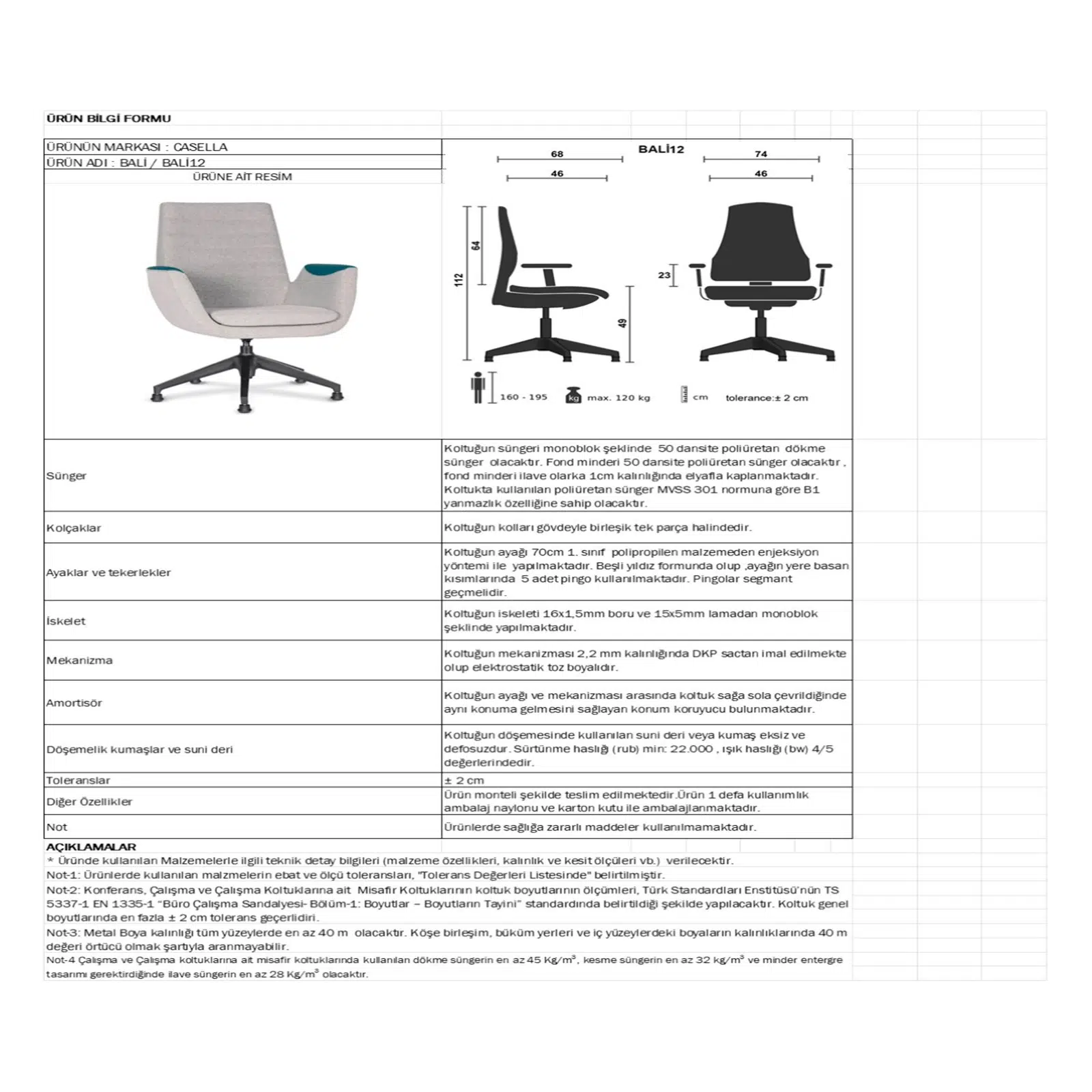| Ürün Tipi | Sabit misafir koltuğu |