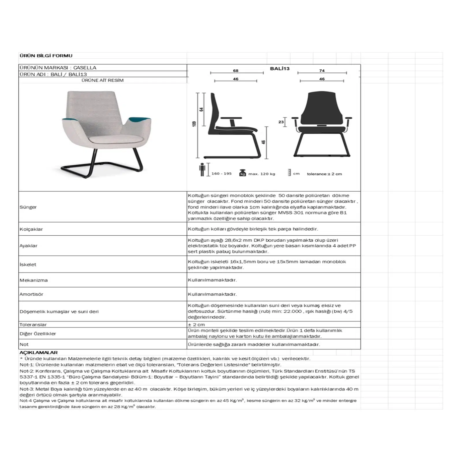 | Ayak Tipi | Boyalı U form metal ayak + plastik ayak |