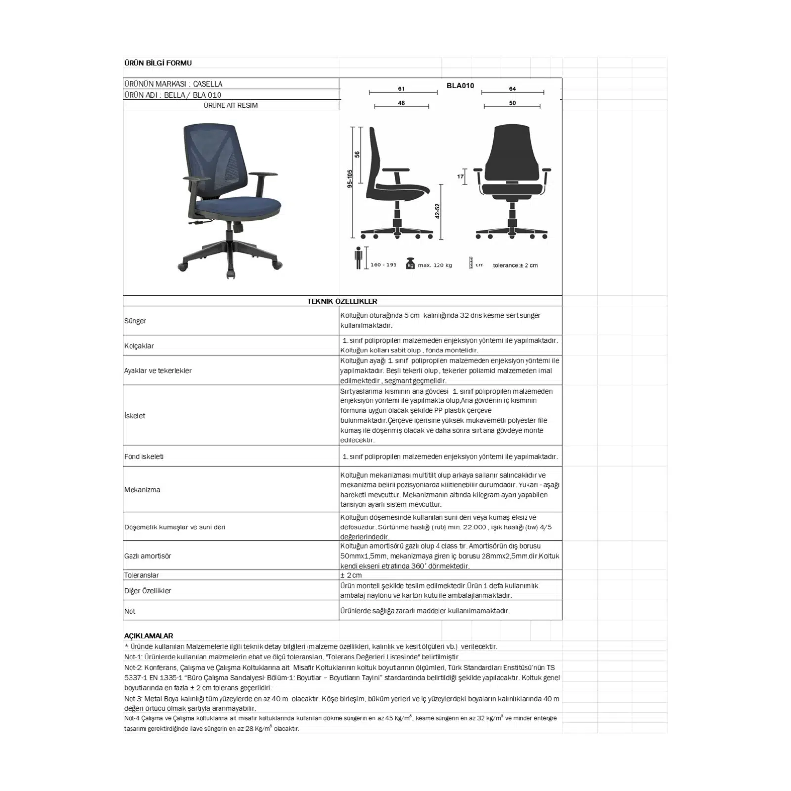 Multi tilt mekanizma sayesinde sırt açısı ve salınım sertliği kullanıcıya göre ayarlanabilir, farklı açılarda güvenle kilitlenebilir. Casella ofis mobilyaları kalite standartlarında üretilen bu model; açık ofisler, çağrı merkezleri, home-office alanları ve kurumsal çalışma ortamları için uygun bir tercihtir.