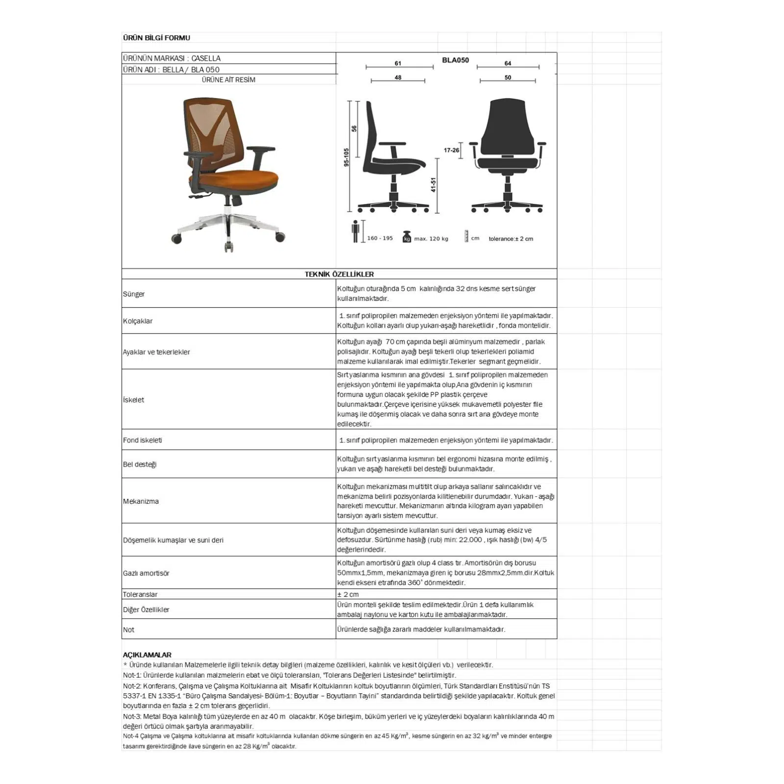 Multi tilt mekanizma sayesinde sırt açısı ve salınım sertliği kolayca ayarlanabilir, farklı açılarda güvenli şekilde kilitlenebilir. Casella ofis mobilyaları kalite standartlarında üretilen bu model; yönetici ofisleri, açık ofis alanları, toplantı odaları ve home-office çalışma ortamları için ideal bir tercihtir.