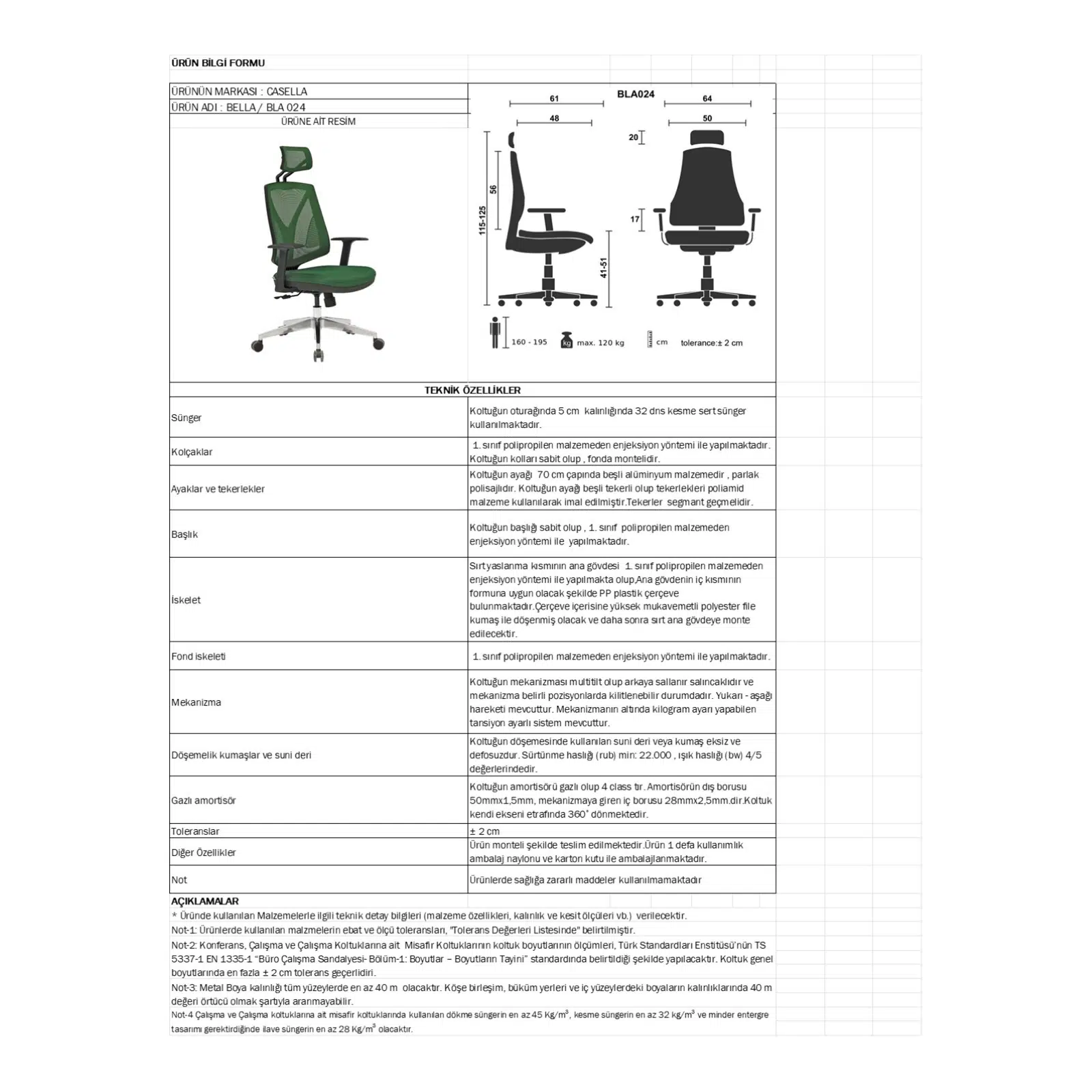 Güçlü alüminyum ayak yapısı uzun ömürlü kullanım ve yüksek stabilite sağlarken, sabit kolçaklar dengeli bir oturma pozisyonu sunar. Ergonomik başlık boyun ve ense bölgesini destekleyerek uzun süreli çalışmalarda oluşan yorgunluğu azaltır.