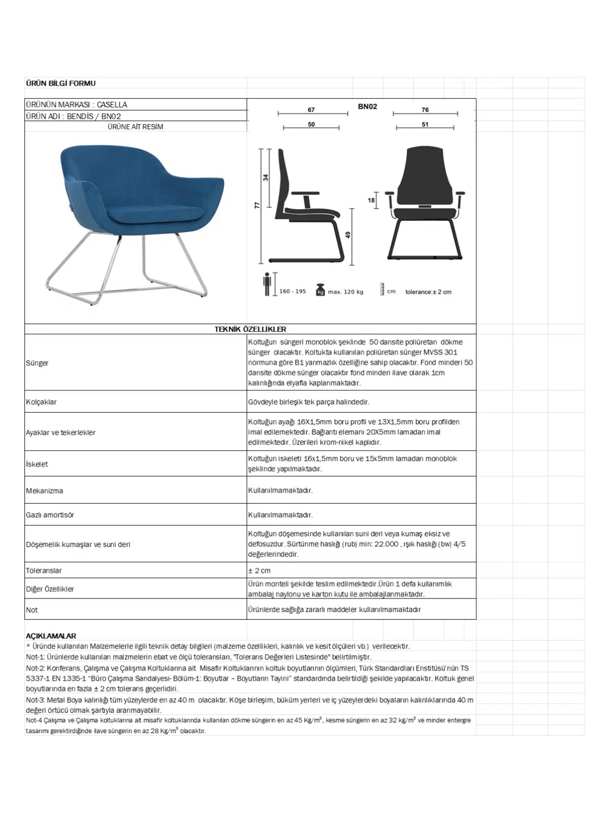 | Döşeme | Gerçek deri / suni deri / leke tutmaz kumaş |