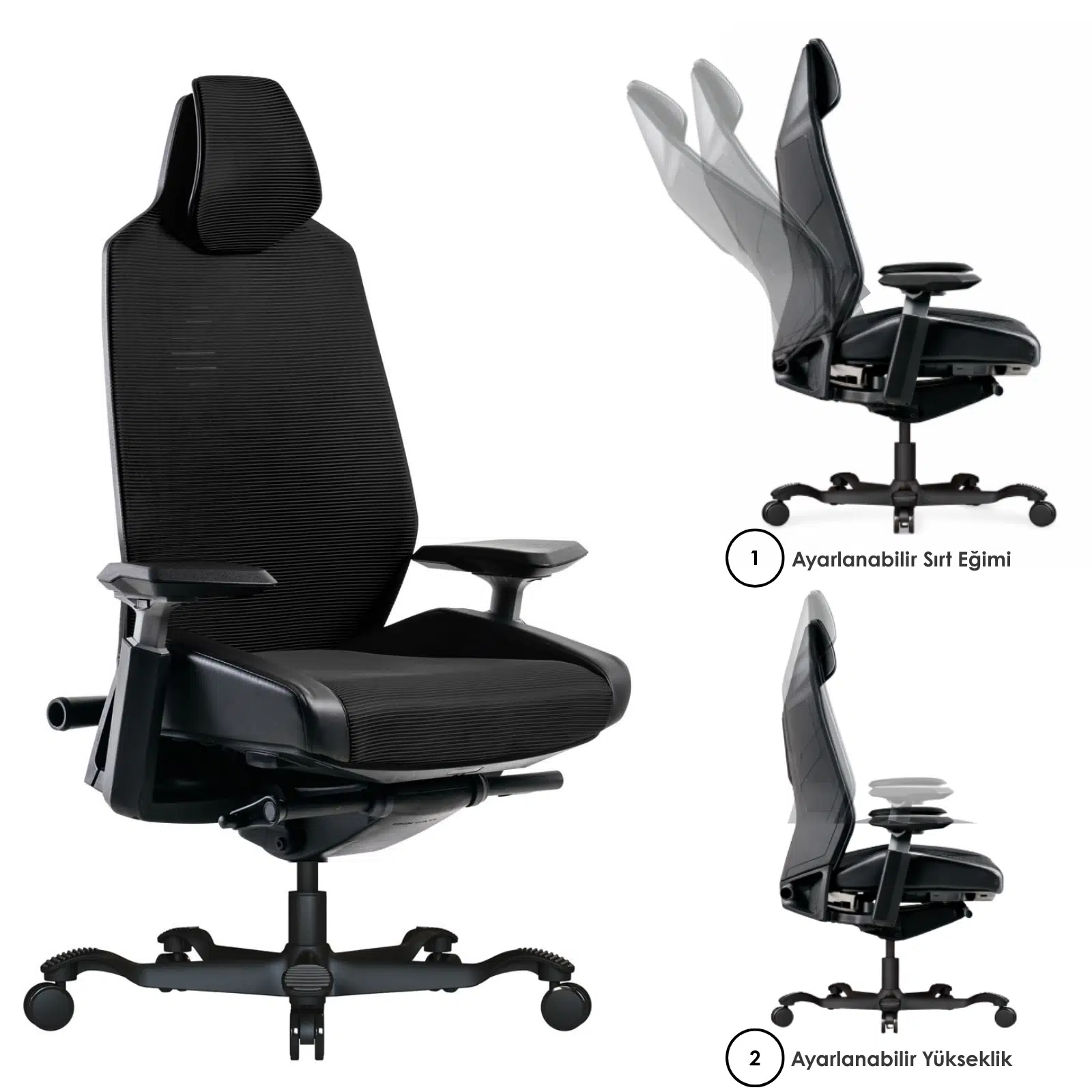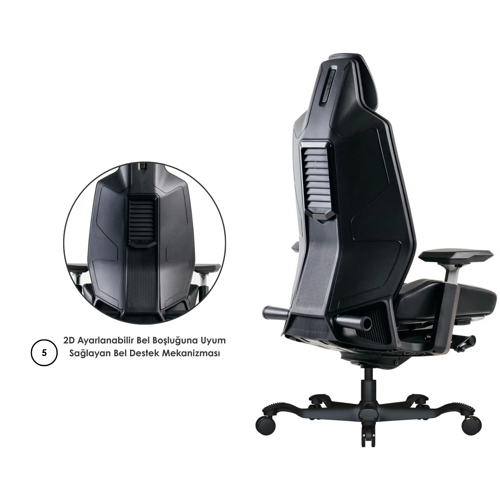 Yüksek performans ve ergonomiyi bir arada sunan siyah boyalı alüminyum ayaklı, 3D ayarlı kollu oyuncu koltuğu, uzun süreli oyun ve bilgisayar kullanımında maksimum konfor sağlamak üzere tasarlanmıştır. Sportif ve modern tasarımıyla gaming alanlarına güçlü bir karakter kazandırır.