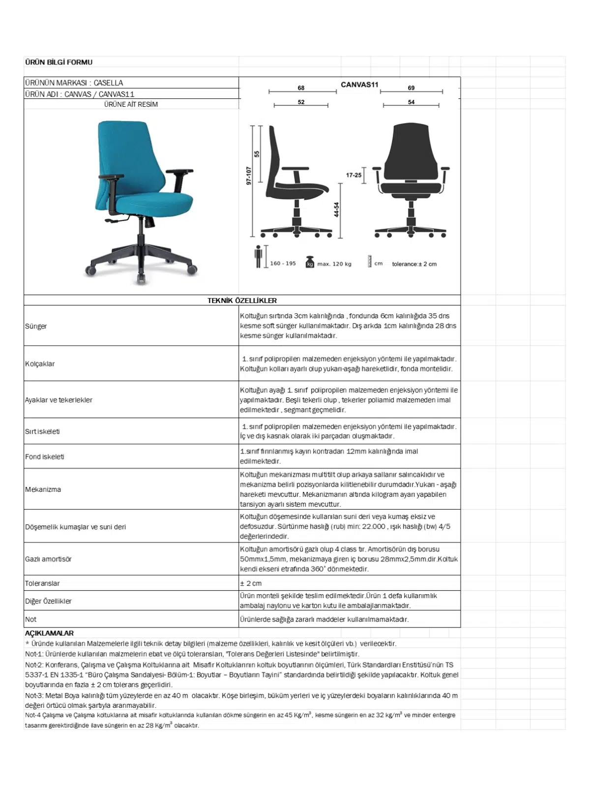 | Mekanizma | Amortisörlü yükseklik Ve sırt eğimi ayarı |