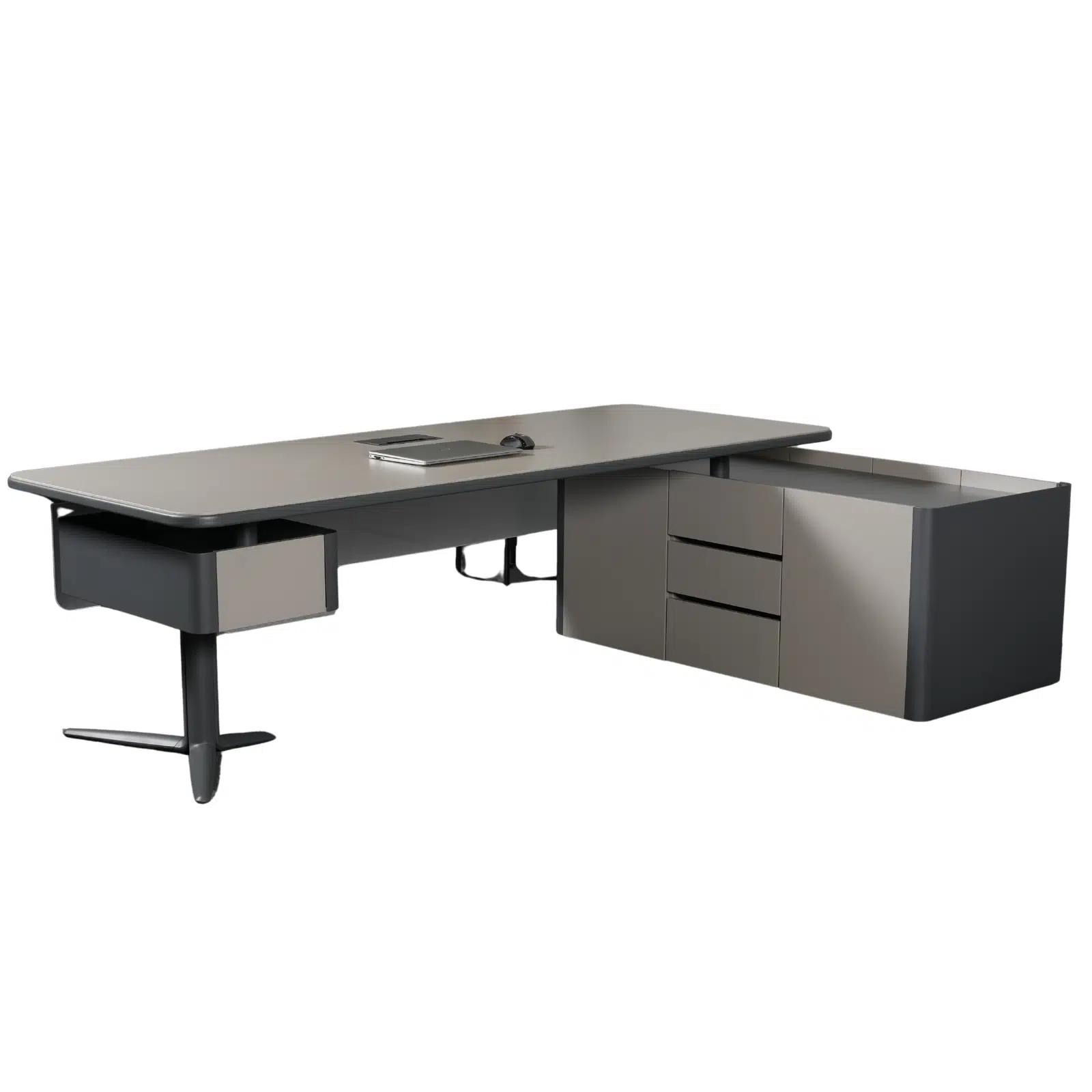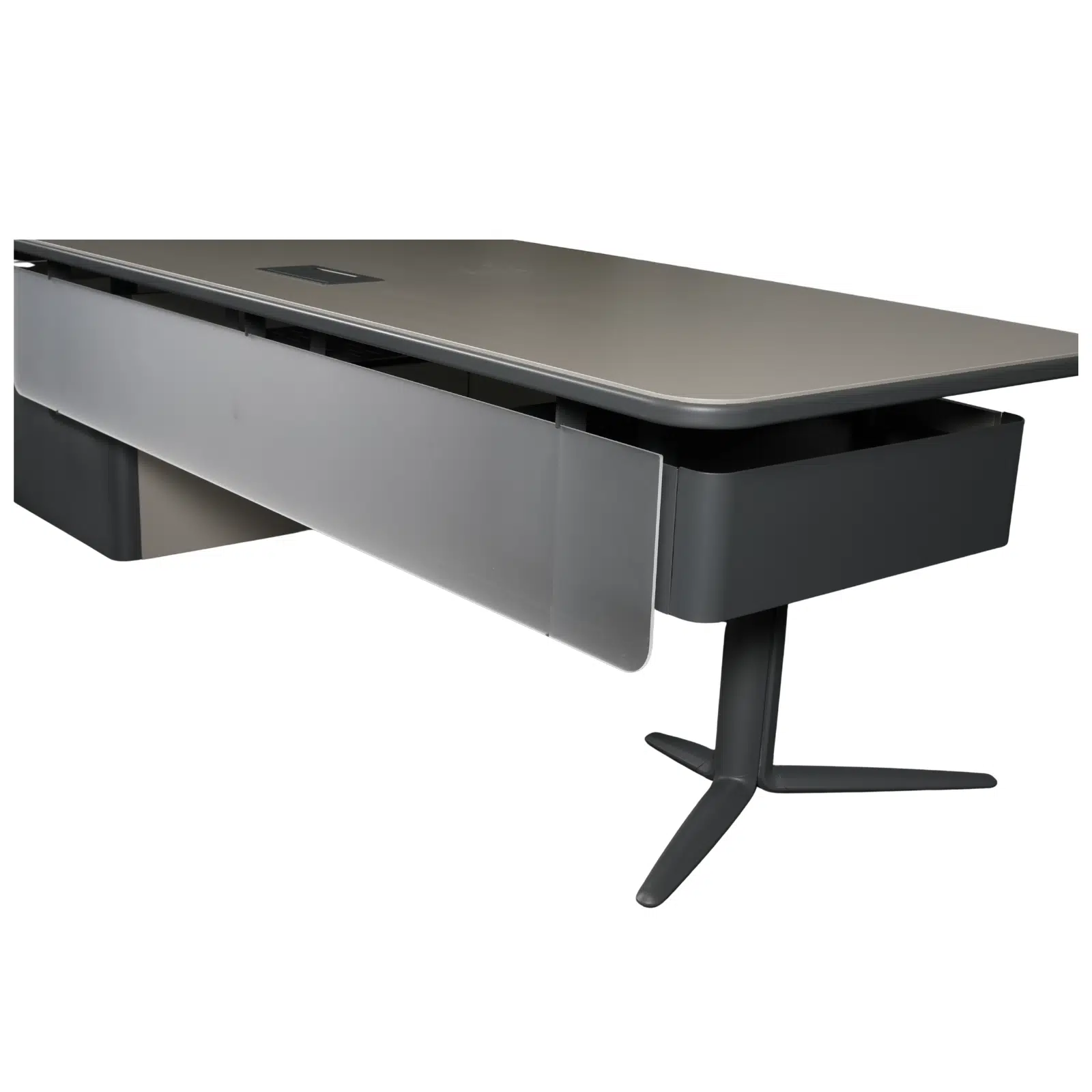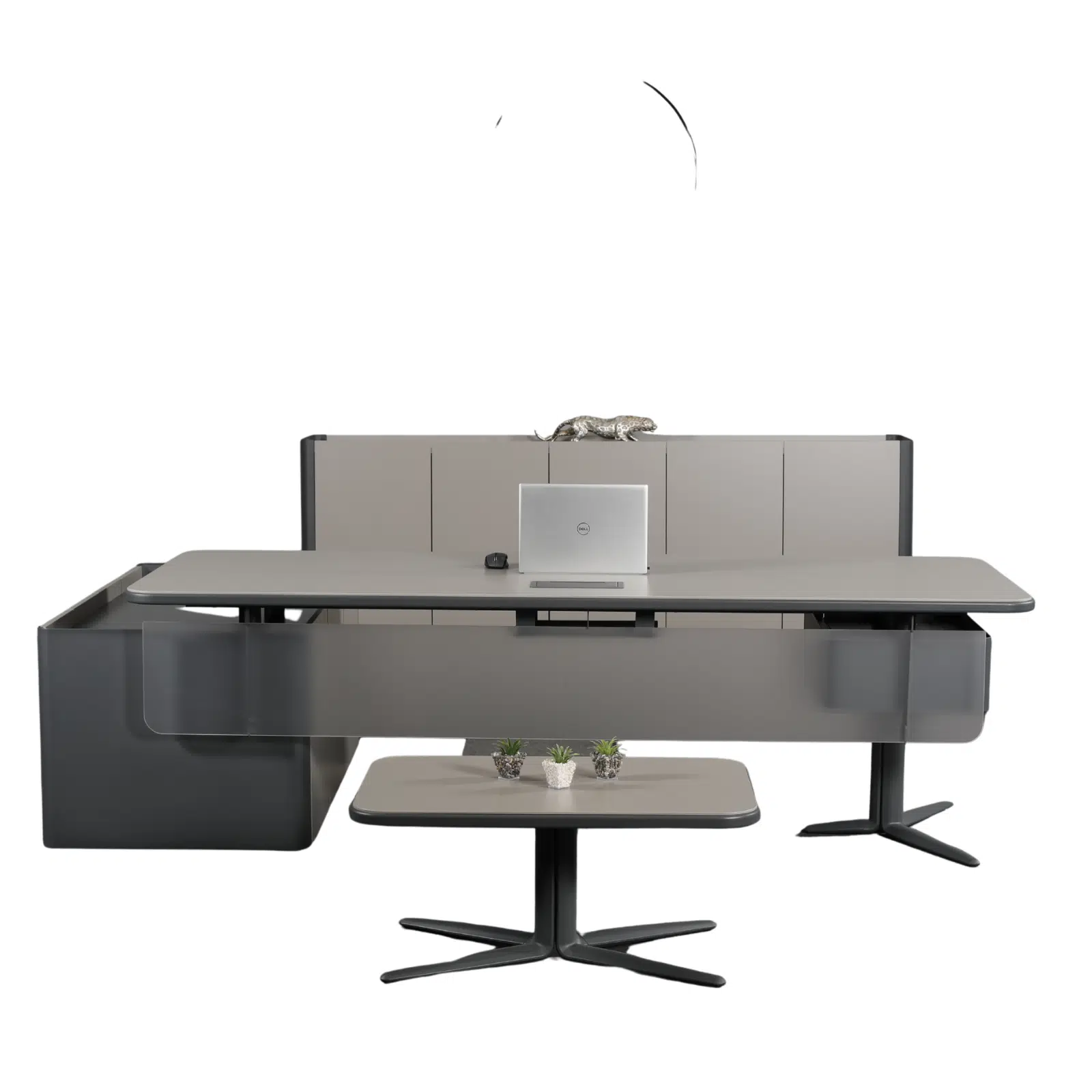 Dayanıklı MDF + melamin kaplama yüzeyi, uzun ömürlü kullanım sağlarken sade formu ofis ortamına ferahlık kazandırır. Geniş masa yüzeyi, yöneticilere rahat bir çalışma alanı sunarken minimal hatlarıyla modern bir atmosfer oluşturur.