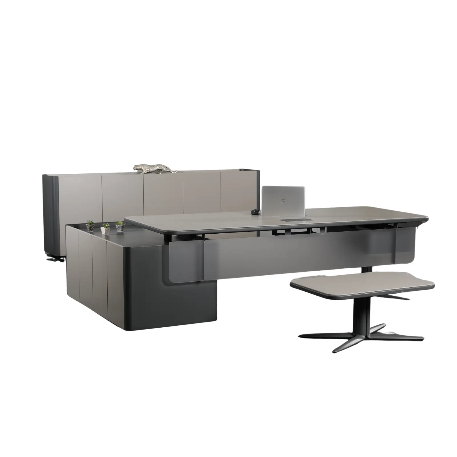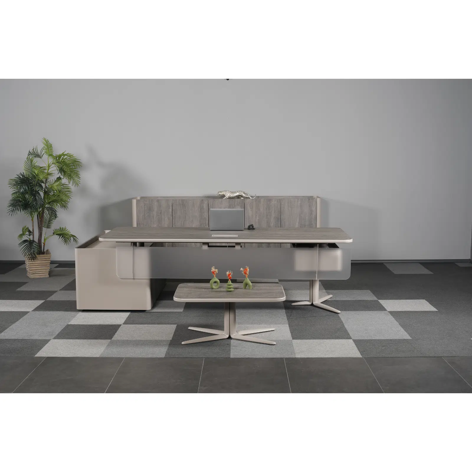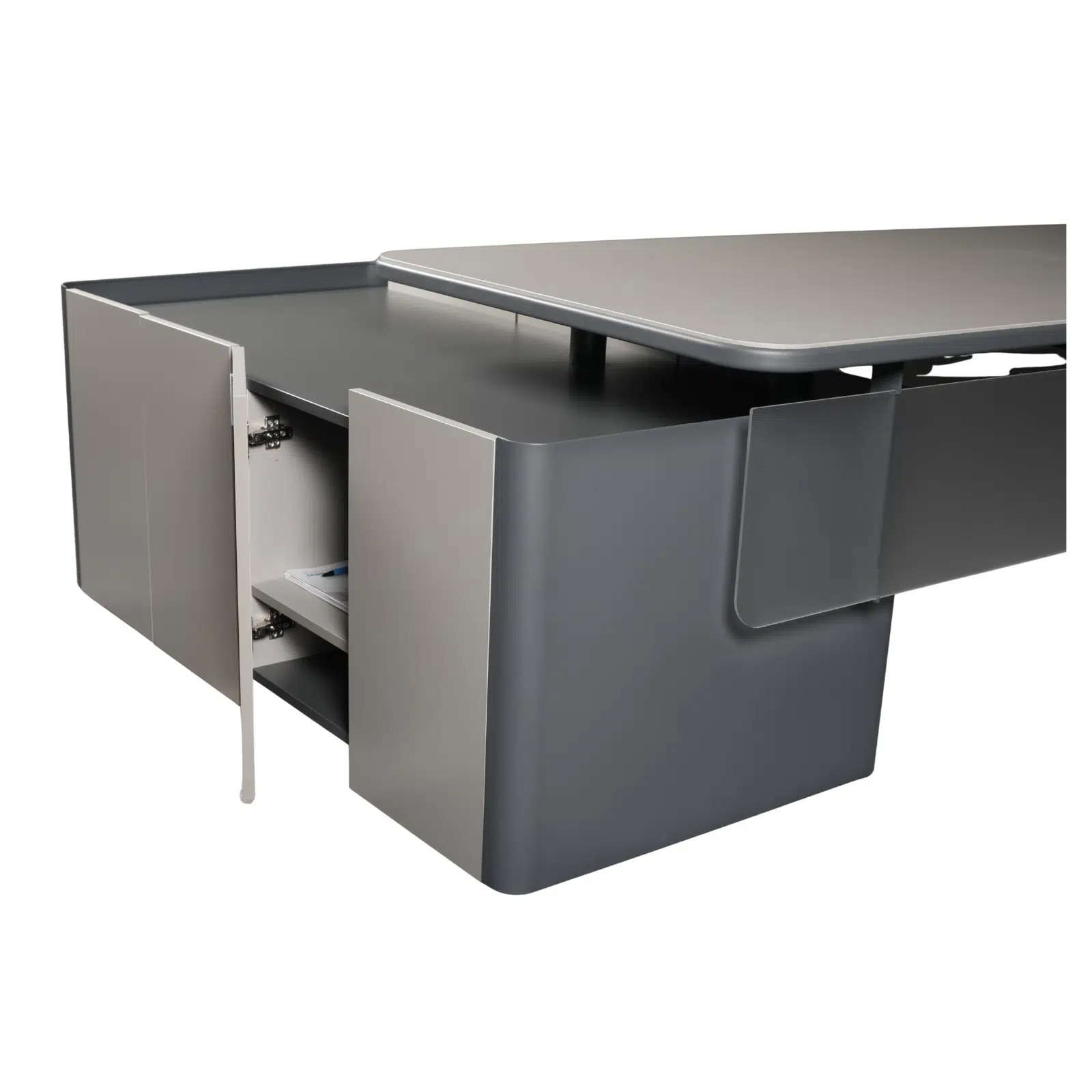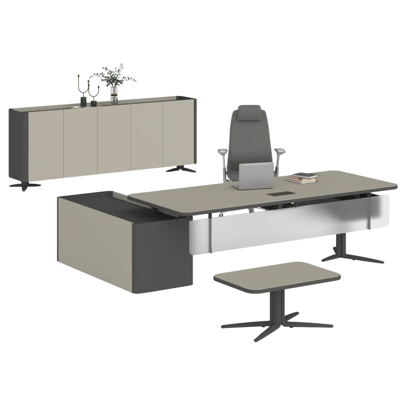 Dayanıklı MDF + melamin kaplama yüzeyi, uzun ömürlü kullanım sağlarken sade formu ofis ortamına ferahlık kazandırır. Geniş masa yüzeyi, yöneticilere rahat bir çalışma alanı sunarken minimal hatlarıyla modern bir atmosfer oluşturur.