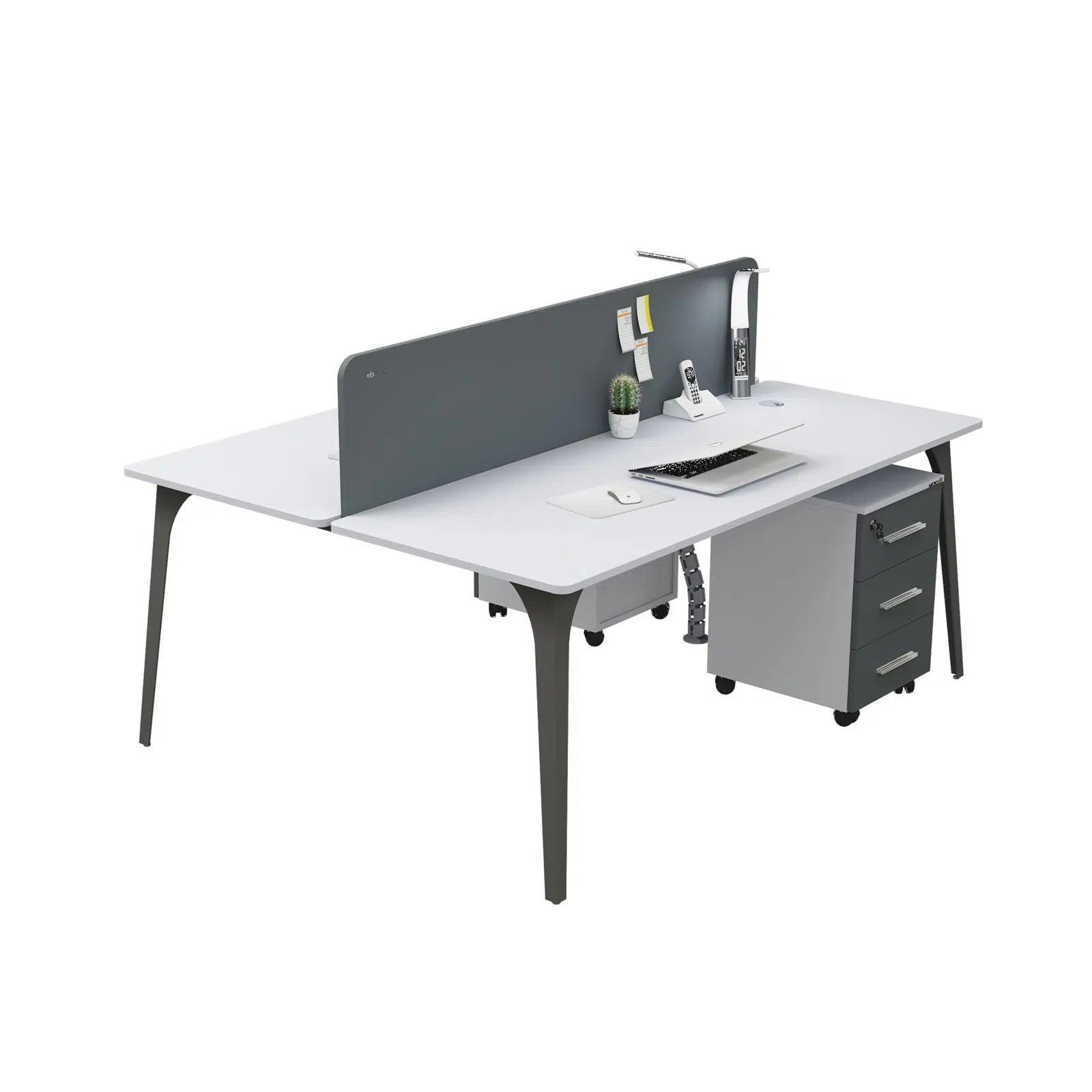Casella Compact İkili Workstation; modern ve açık ofis kurguları, çağrı merkezi alanları ve ekip çalışma bölgeleri için tasarlanmış, bölmeli çoklu çalışma masası çözümüdür. Minimal tasarımı, kablo geçiş detayları ve gizli depolama çözümleri ile düzenli bir çalışma ortamı sunar. Yüksek dayanımlı tabla yapısı, metal ayaklar ve akustik paneller sayesinde hem konforlu hem de verimli bir çalışma deneyimi sağlar.