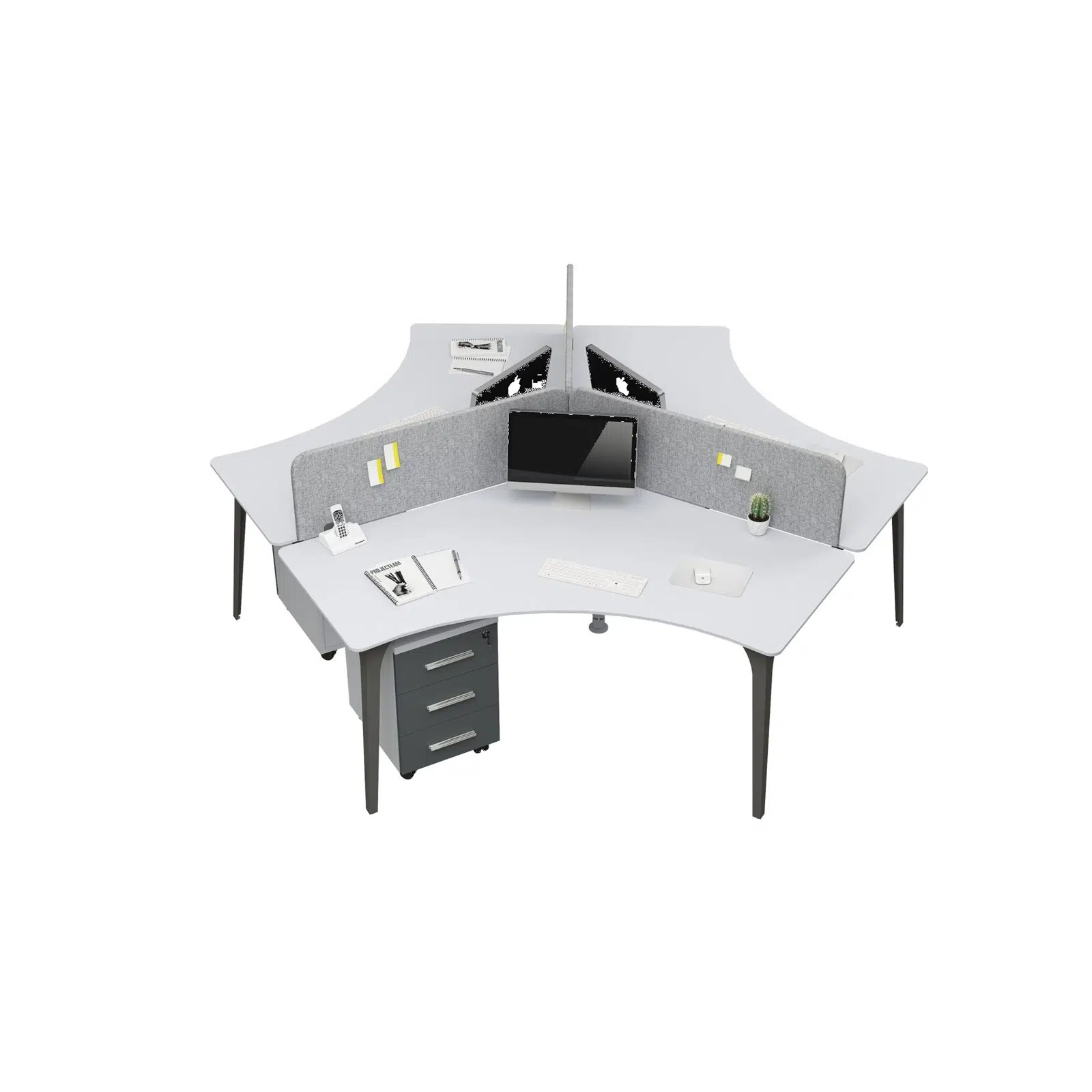 Casella Compact Üçlü Yonca Workstation; modern ve açık ofis kurguları, çağrı merkezi alanları ve ekip çalışma bölgeleri için tasarlanmış, bölmeli çoklu çalışma masası çözümüdür. Minimal tasarımı, kablo geçiş detayları ve gizli depolama çözümleri ile düzenli bir çalışma ortamı sunar. Yüksek dayanımlı tabla yapısı, metal ayaklar ve akustik paneller sayesinde hem konforlu hem de verimli bir çalışma deneyimi sağlar.