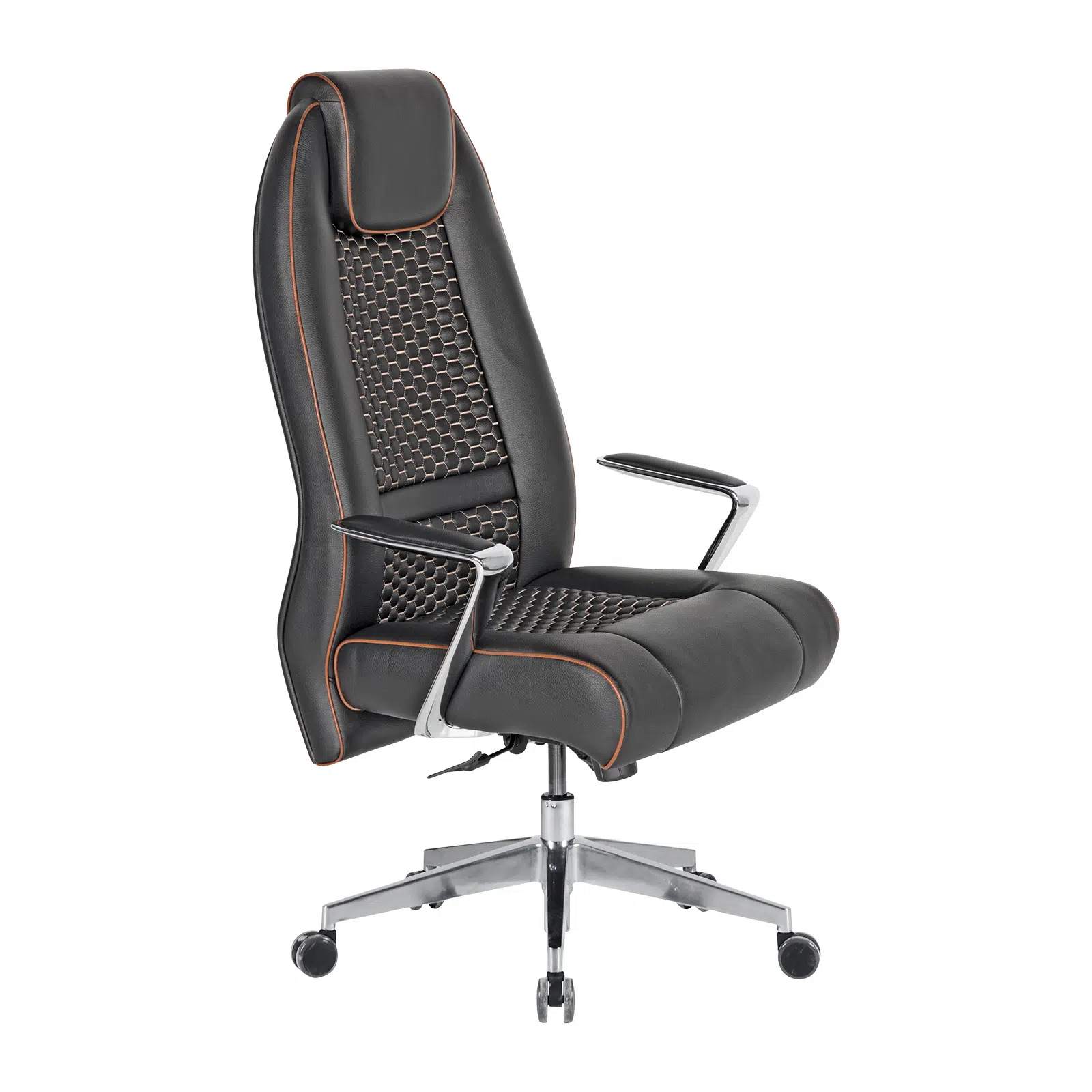 Alüminyum kol yapısı kol ve omuz bölgesine güçlü destek sunarken, paslanmaya ve darbelere karşı yüksek direnç gösterir. Metal detaylarıyla ofis ortamına prestijli ve profesyonel bir görünüm kazandırır.