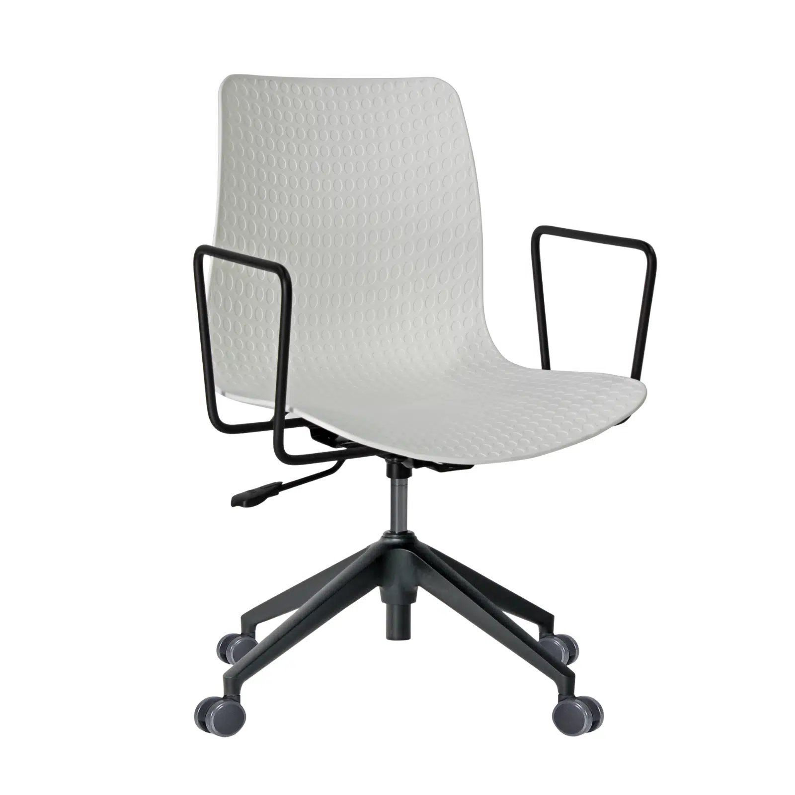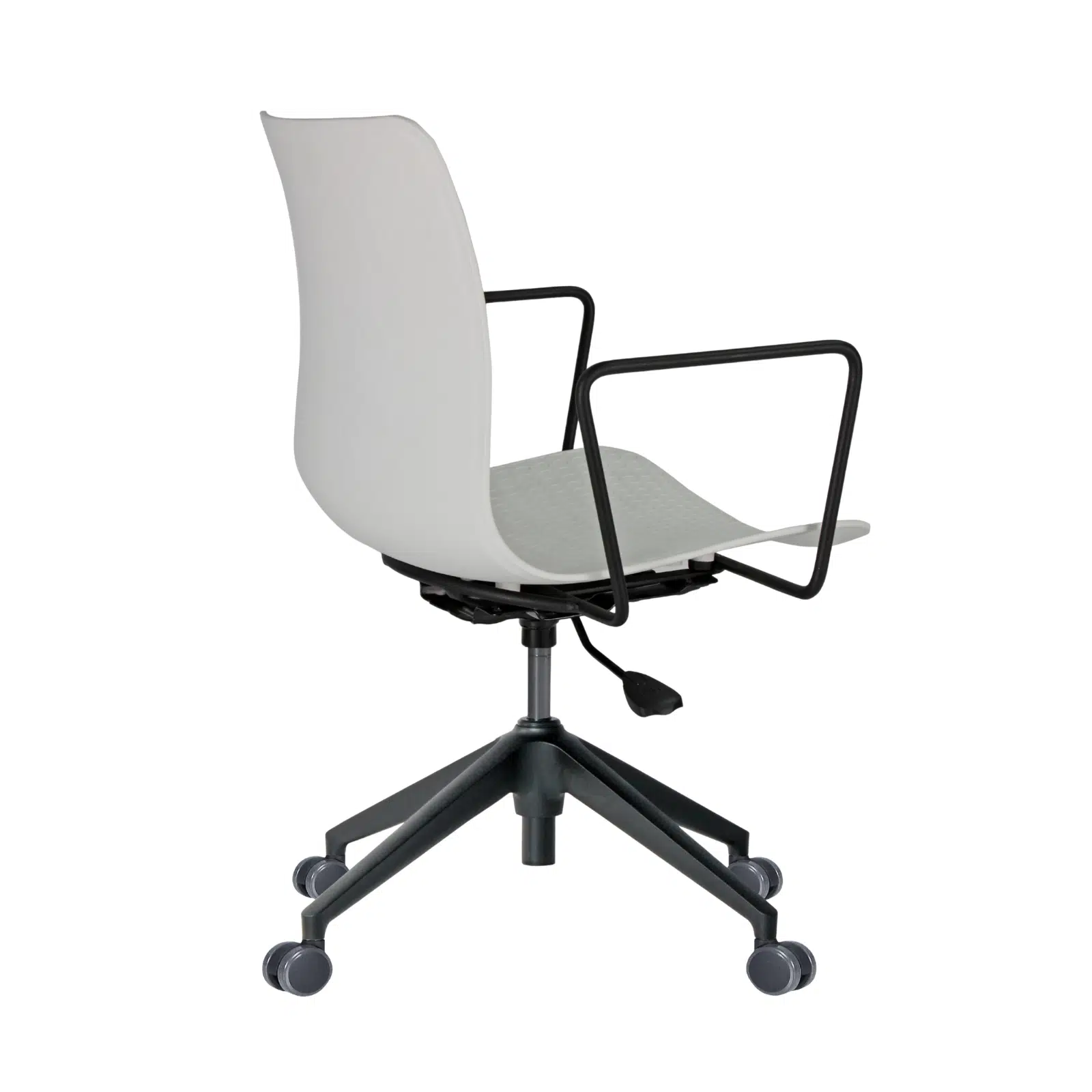 Beyaz plastik gövde, 4’lü plastik ayaklı, tekerlekli ve boyalı kollu çalışma koltuğu, modern tasarımı ve fonksiyonel yapısı ile ofisler, çalışma alanları ve eğitim ortamları için pratik ve konforlu bir oturma çözümü sunar. Dayanıklı beyaz plastik gövde, ferah ve sade görünümü ile bulunduğu ortama modern bir atmosfer kazandırırken uzun ömürlü kullanım sağlar.