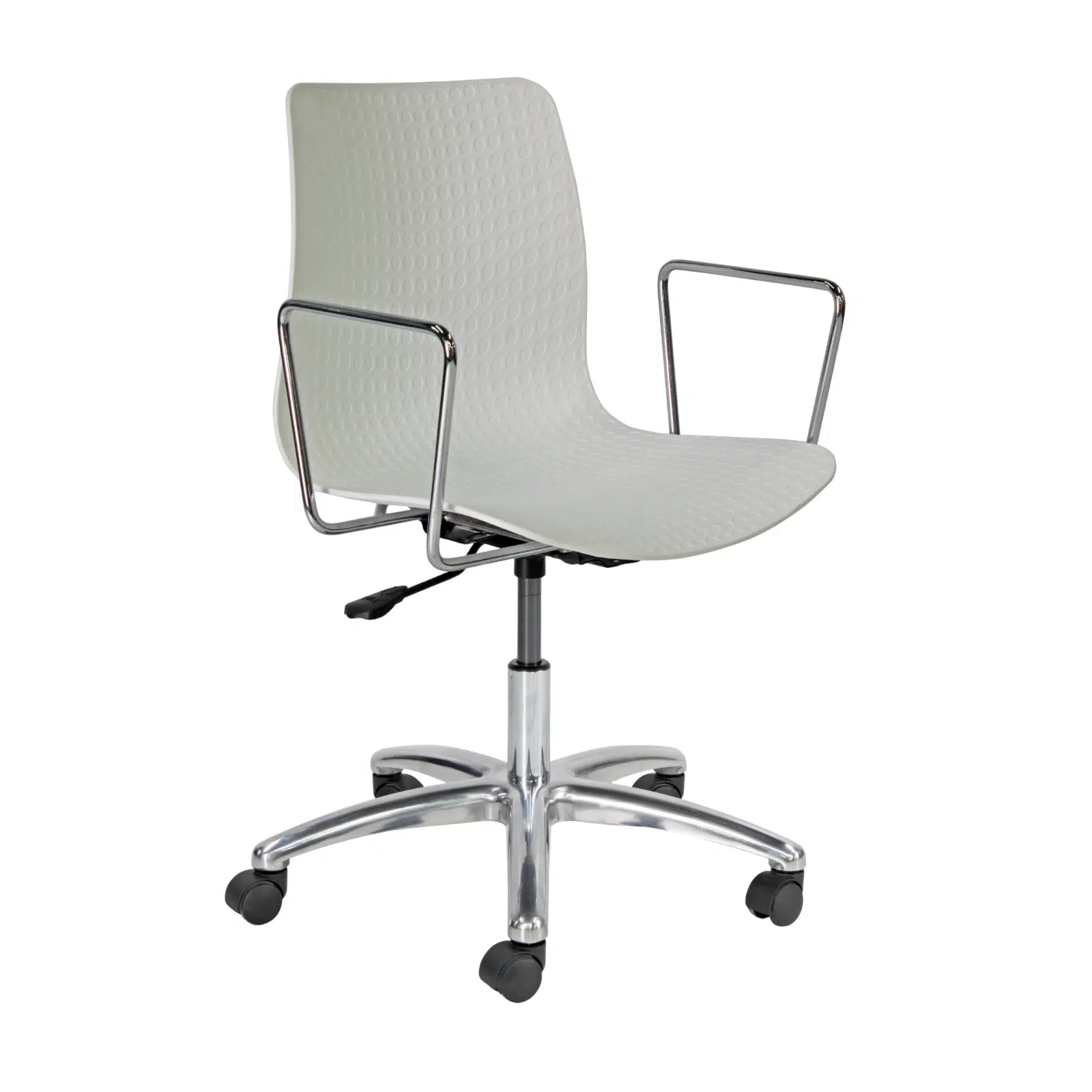 Beyaz plastik gövde, alüminyum ayak ve krom kollu sandalye, modern tasarımı ve dayanıklı yapısı ile ofisler, bekleme alanları, eğitim kurumları ve kurumsal mekanlar için konforlu ve estetik bir oturma çözümü sunar. Dayanıklı beyaz plastik gövde, ferah ve sade görünümü ile bulunduğu ortama modern bir atmosfer kazandırırken uzun ömürlü kullanım sağlar.