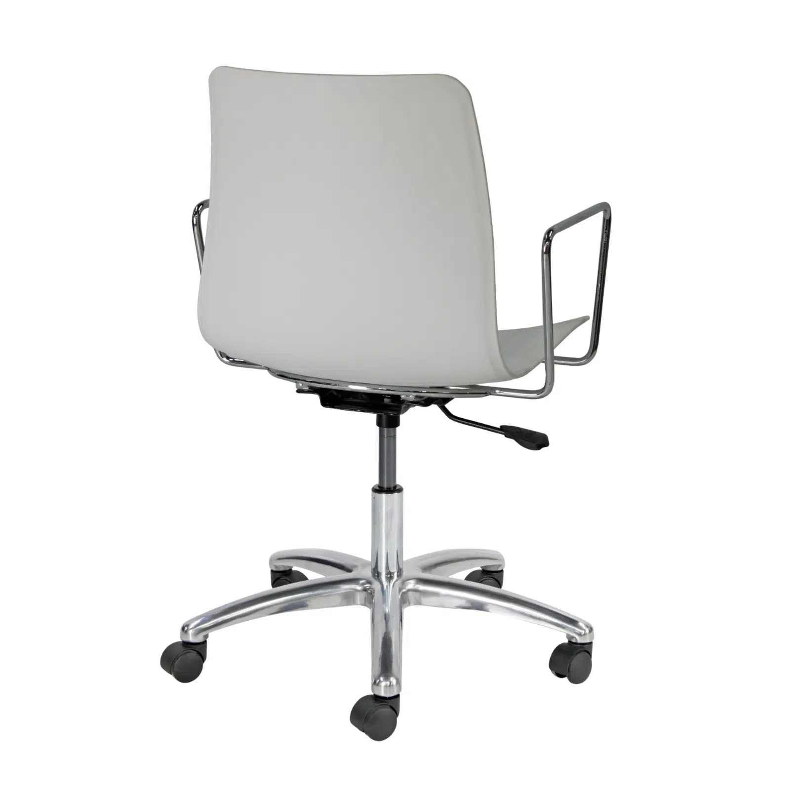 Sağlam alüminyum ayak yapısı, sandalyeye hafiflik ve dayanıklılık kazandırırken dengeli bir kullanım sunar. Şık krom kol yapısı, kullanıcıya destekli ve rahat bir oturum imkanı sağlarken sandalyeye modern ve prestijli bir görünüm kazandırır. Ergonomik tasarımı sayesinde hem konforlu hem de fonksiyonel bir kullanım sunar.