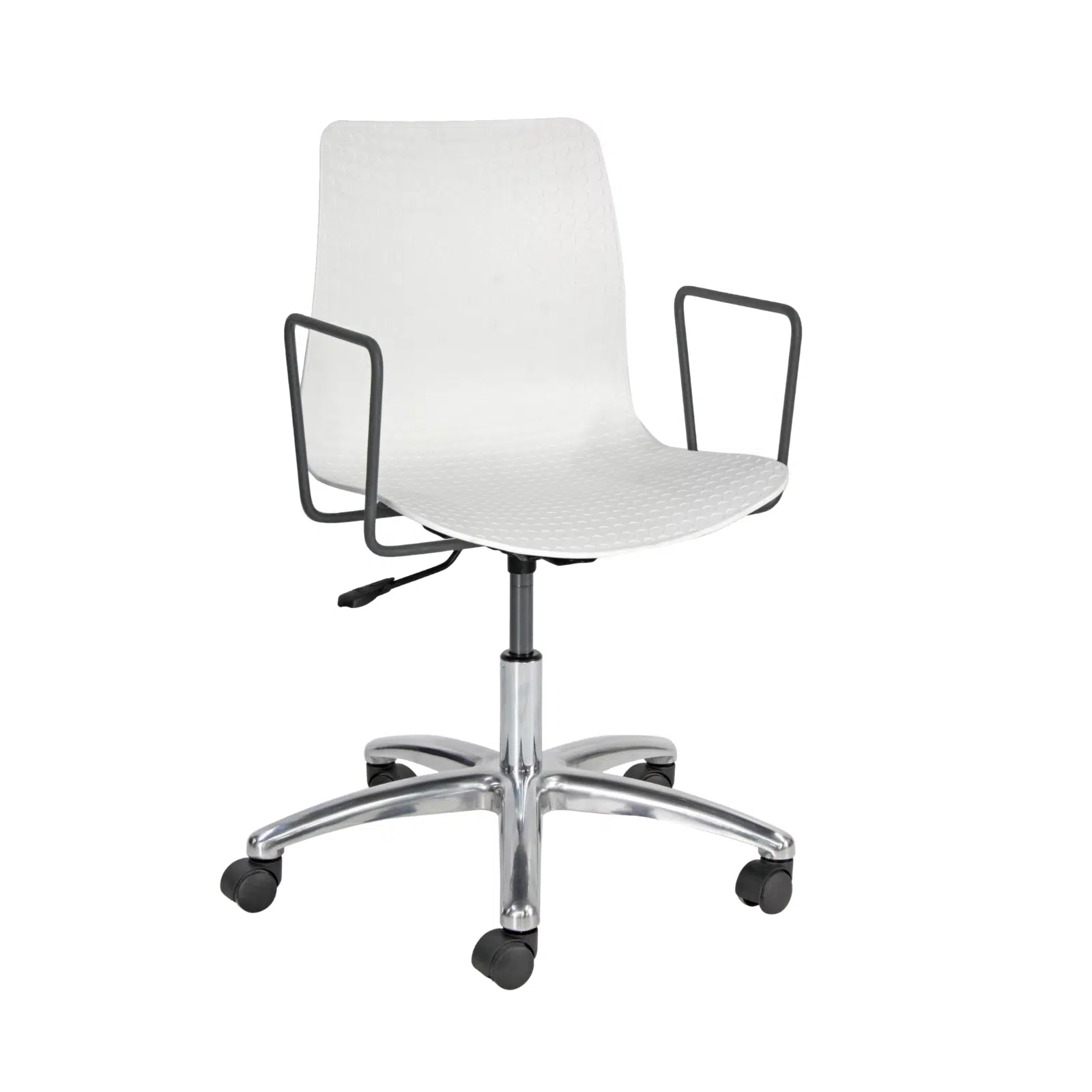 Beyaz plastik gövde, alüminyum ayak ve boyalı kollu sandalye, modern tasarımı ve dayanıklı yapısı ile ofisler, bekleme alanları, eğitim kurumları ve kurumsal mekanlar için konforlu bir oturma çözümü sunar. Dayanıklı beyaz plastik gövde, ferah ve sade görünümü ile bulunduğu ortama modern bir atmosfer kazandırırken uzun ömürlü kullanım sağlar.
