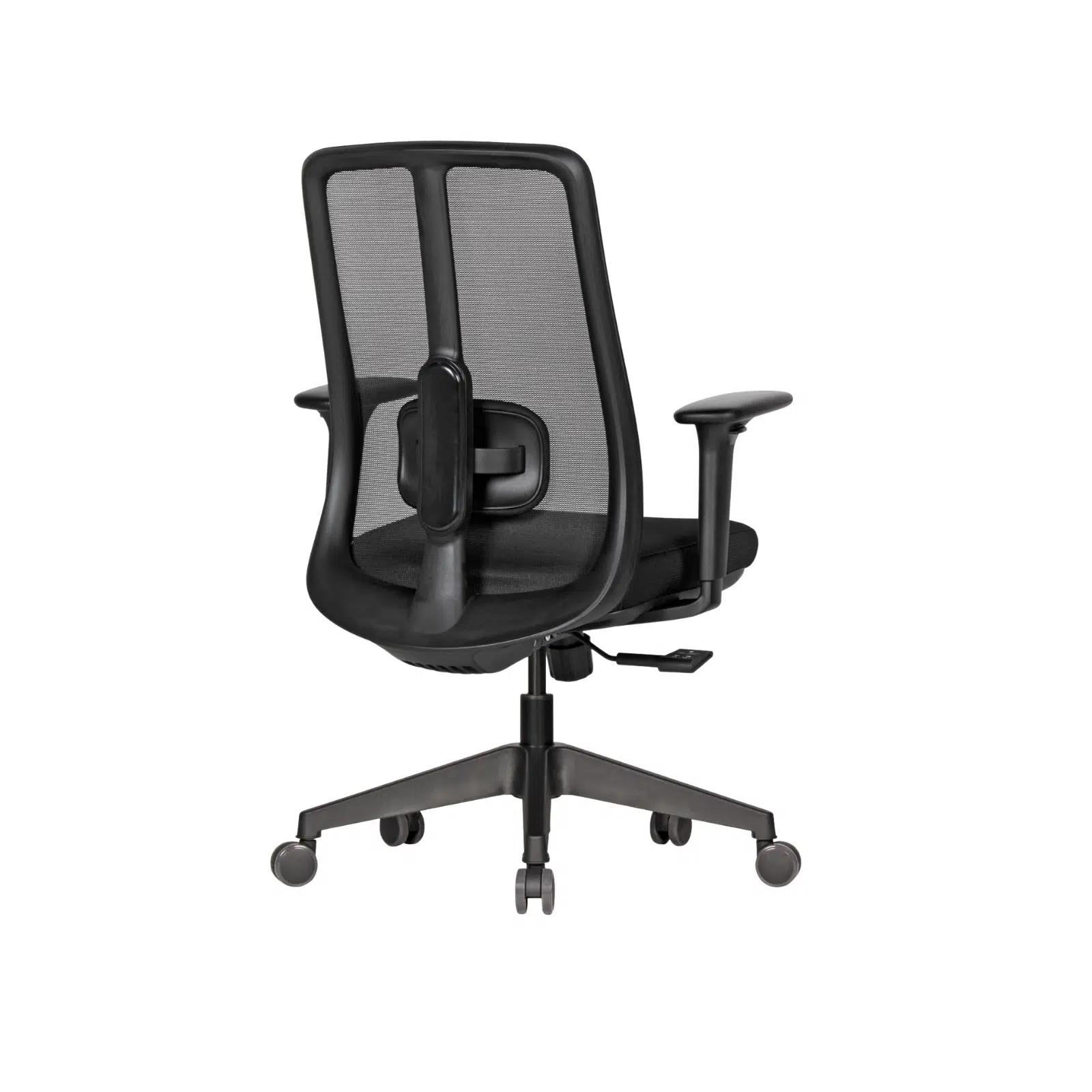 Dayanıklı plastik yıldız ayak, günlük ofis kullanımına uygun sağlam bir yapı sunarken hafifliği sayesinde kolay hareket imkânı sağlar. Nefes alabilen sırt ve oturum yüzeyi, uzun süreli çalışmalarda terlemeyi azaltarak ferah bir kullanım sunar.