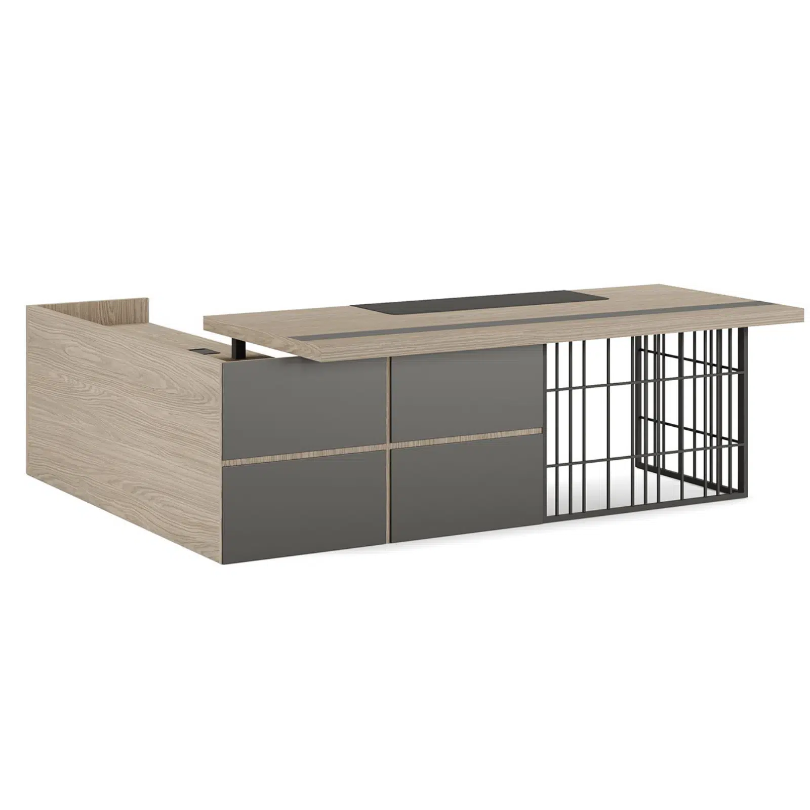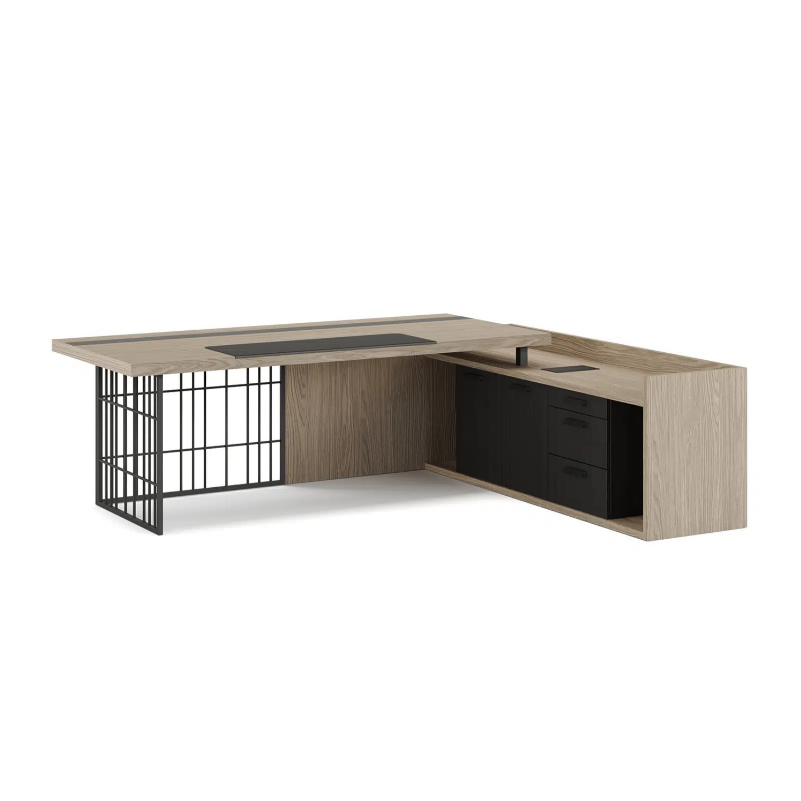 Casella Eva Yönetici Takımı, modern ofis tasarımı ve güçlü çizgileri ile yönetici ofislerinde prestijli ve şık bir çalışma alanı oluşturur. Doğal ahşap dokusu ve koyu renk detayların birleşimi sayesinde ofis dekorasyonuna modern ve kurumsal bir görünüm kazandırır.