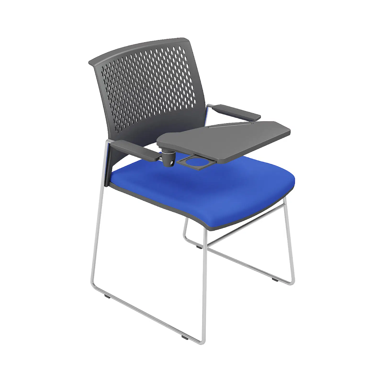 Siyah plastik gövde, krom ayak ve kollu yazı tablalı bekleme koltuğu, eğitim alanları, seminer salonları, konferans odaları ve kurumsal bekleme alanları için modern ve fonksiyonel bir oturma çözümü sunar. Dayanıklı siyah plastik gövde yapısı, uzun ömürlü kullanım sağlarken sade ve şık tasarımı ile bulunduğu ortama profesyonel bir görünüm kazandırır.
