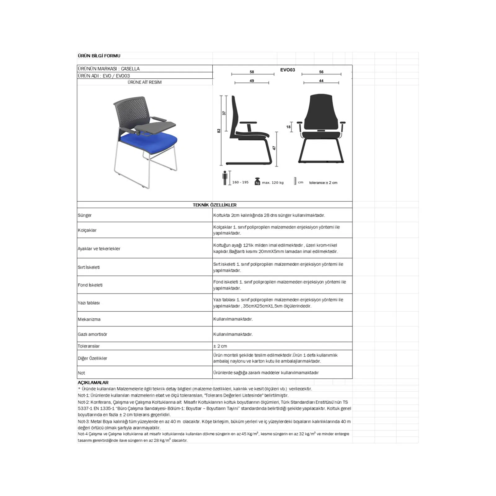 Sağlam ve estetik krom metal ayak ve kol yapısı, koltuğa hem dayanıklılık hem de prestijli bir görünüm kazandırır. Üzerinde bulunan yazı tablalı kol, eğitim, toplantı ve not alma gerektiren alanlarda kullanıcıya pratik bir kullanım imkanı sağlar. Ergonomik oturum yapısı sayesinde uzun süreli kullanımlarda konfor sunan bu yazı tablalı eğitim ve bekleme koltuğu, fonksiyonelliği ve modern tasarımı ile öne çıkar.