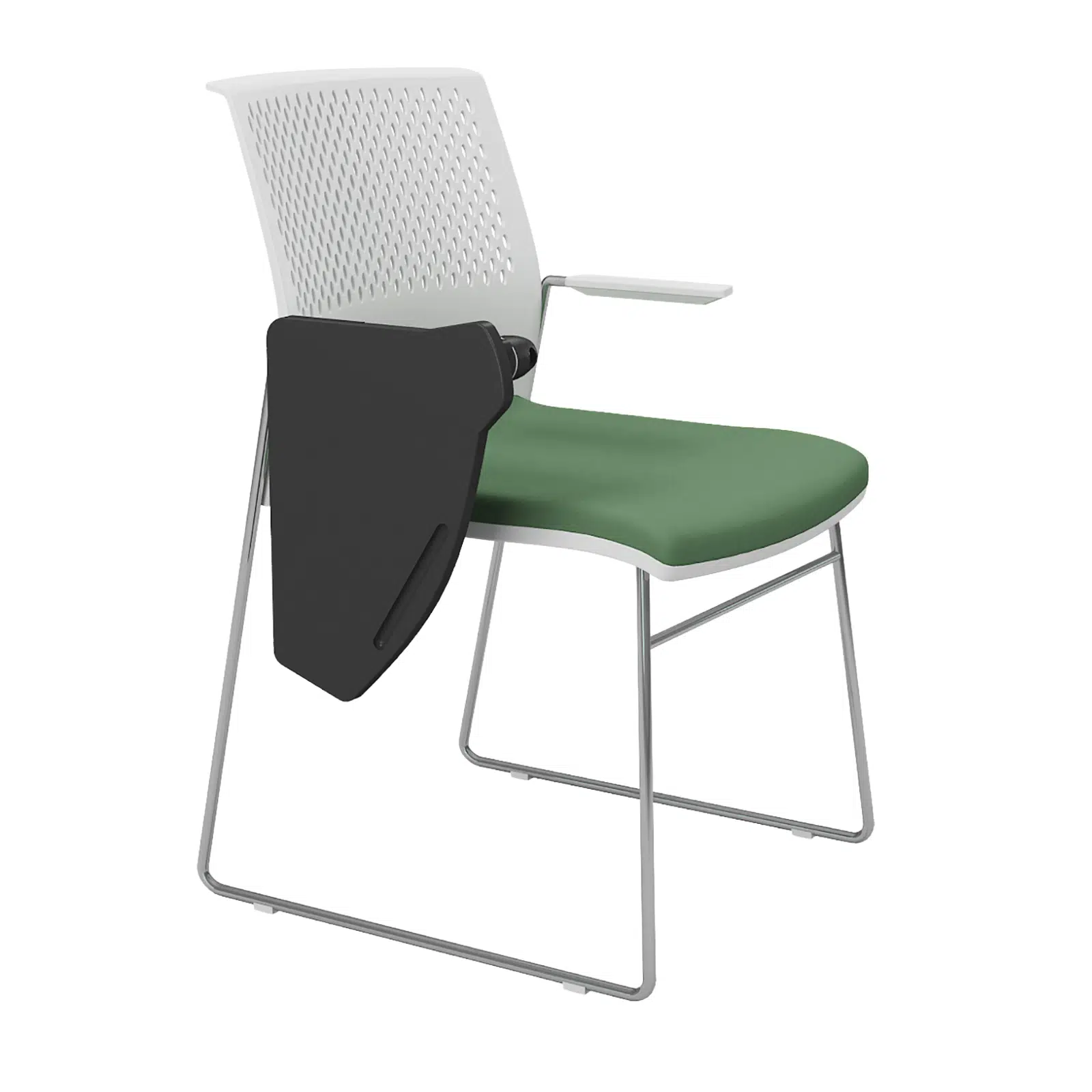 Beyaz plastik gövde, krom ayak ve kollu yazı tablalı bekleme koltuğu, eğitim alanları, seminer salonları, konferans odaları ve kurumsal bekleme alanları için modern ve fonksiyonel bir oturma çözümü sunar. Dayanıklı beyaz plastik gövde yapısı, hafif ve sağlam yapısıyla uzun ömürlü kullanım sağlarken sade ve modern tasarımı ile bulunduğu ortama estetik bir görünüm kazandırır.