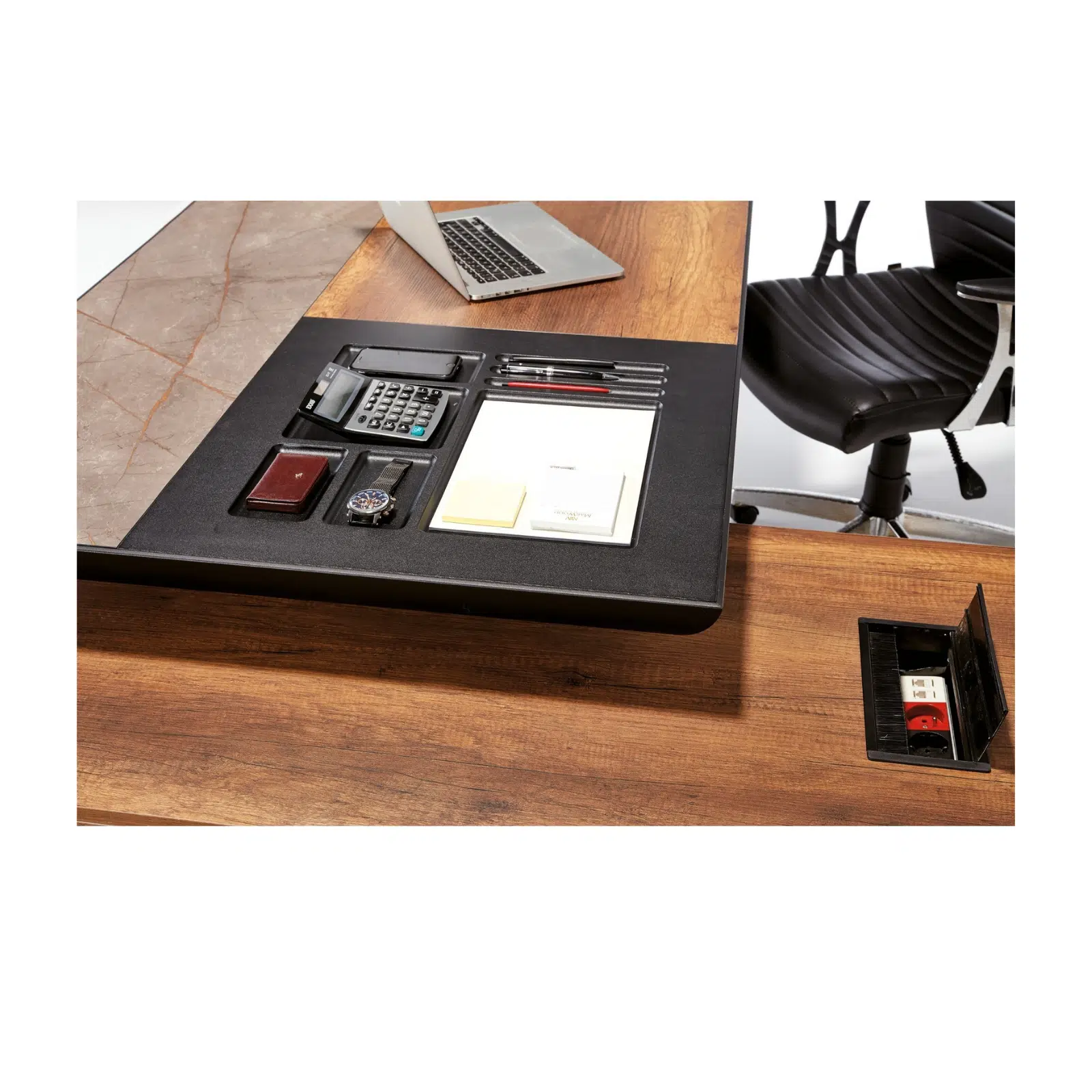 Casella çizgisini yansıtan Masalar>Makam Masaları, ofisinizde prestij ve düzeni bir araya getirerek yöneticilere odaklanmayı kolaylaştıran bir çalışma alanı sunar.
