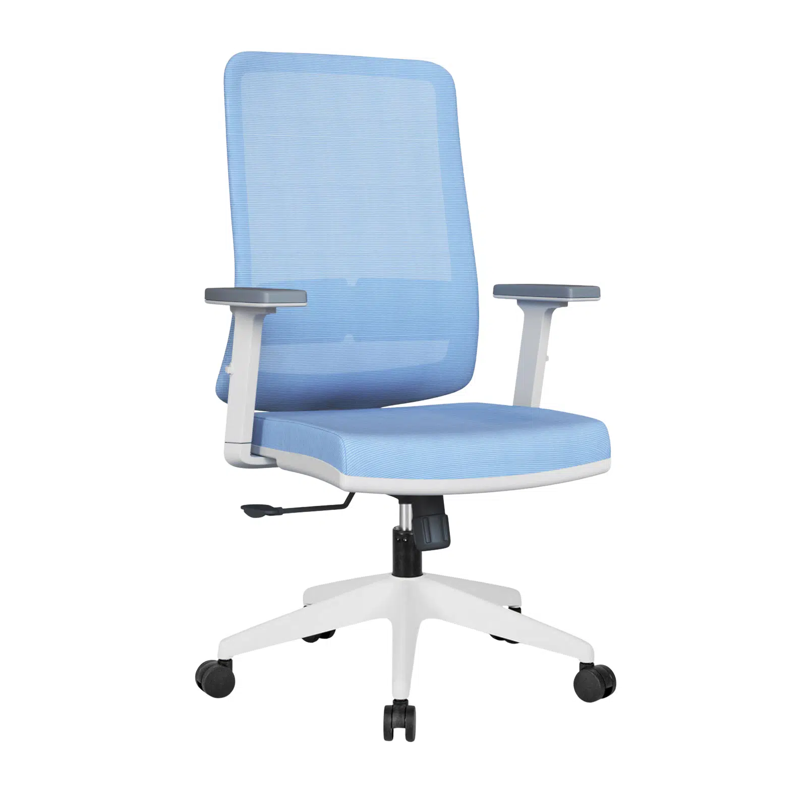 Modern tasarımı ve fonksiyonel ergonomisiyle öne çıkan beyaz gövdeli, ayarlı kollu, plastik ayaklı, gri bel destekli multi tilt mekanizmalı ofis koltuğu, uzun süreli masa başı çalışmalarda konfor ve estetiği bir arada sunar.