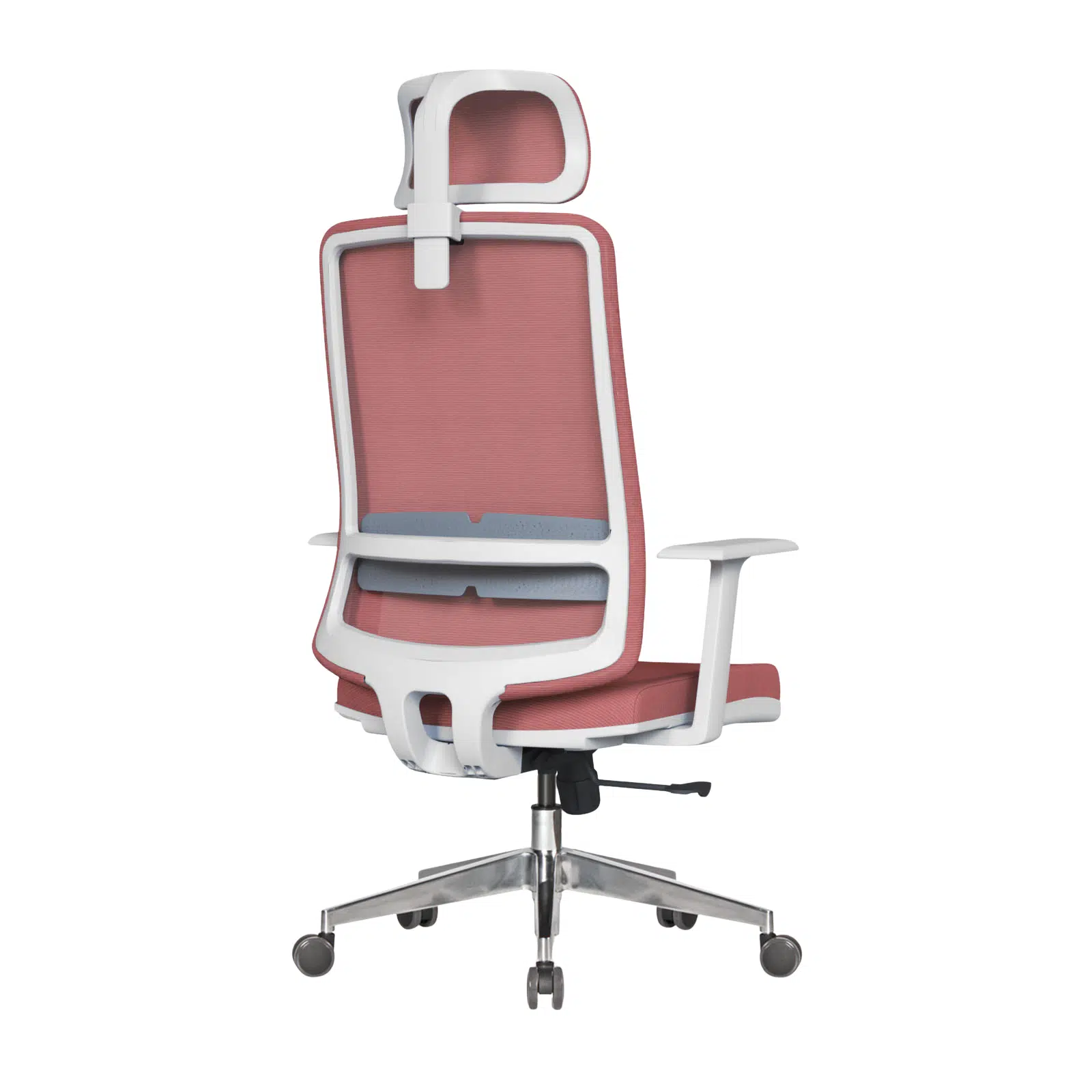Minimal tasarımı ve profesyonel duruşuyla öne çıkan beyaz gövdeli, sabit kollu, alüminyum ayaklı, gri bel destekli multi tilt mekanizmalı ofis koltuğu, modern ofis alanlarında konforu ve estetiği bir arada sunar.