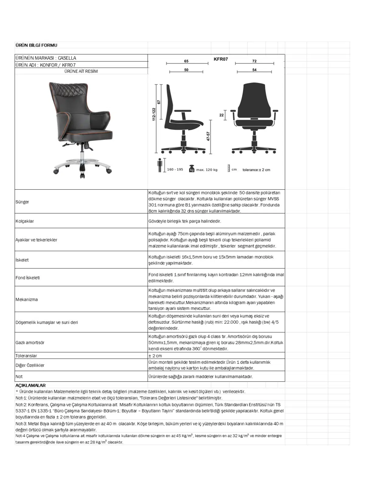 | Döşeme | Gerçek deri / suni deri / leke tutmaz kumaş; file sırt opsiyonu |