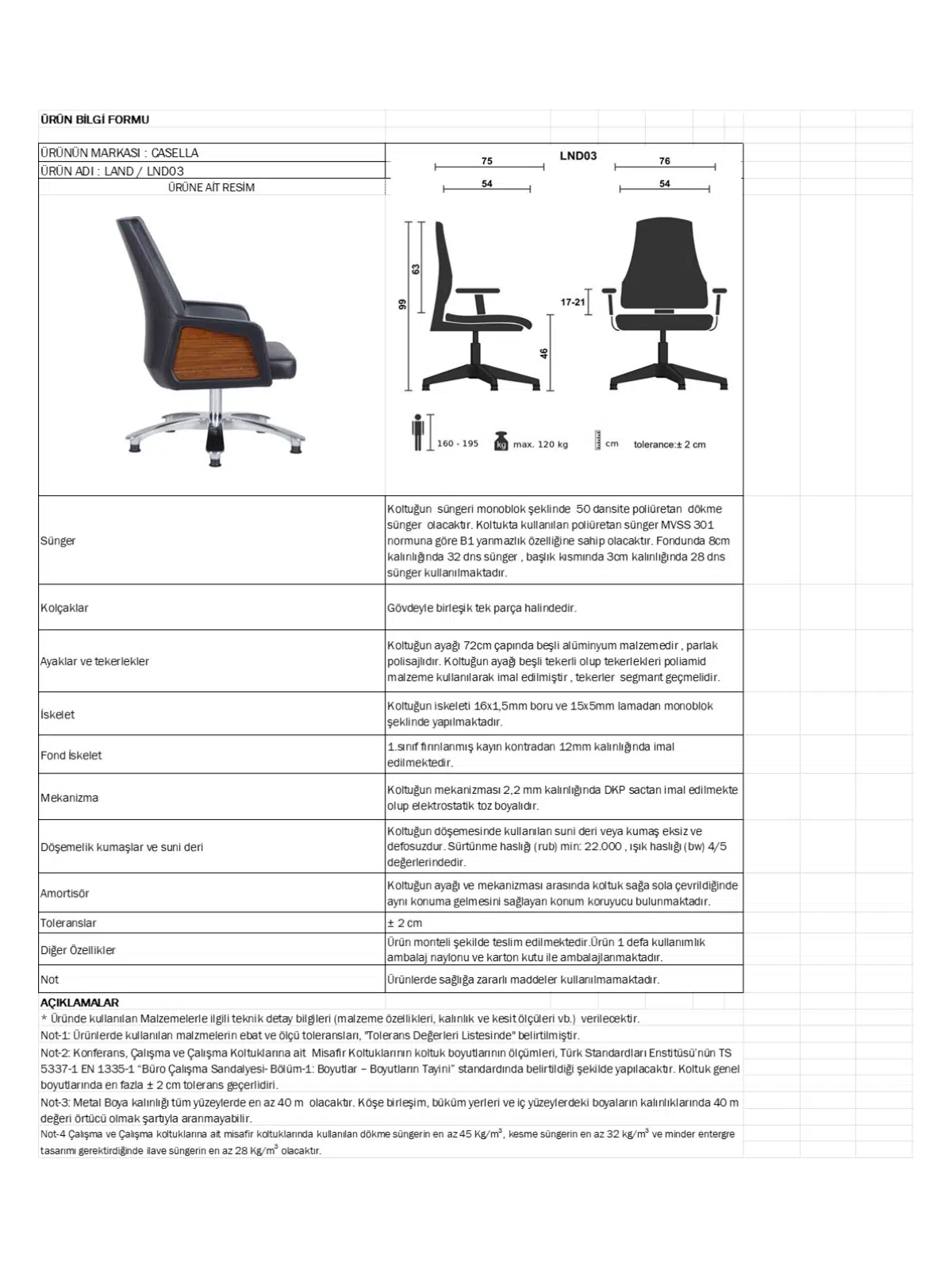 | Mekanizma | Amortisörlü yükseklik Ve sırt eğimi ayarı |