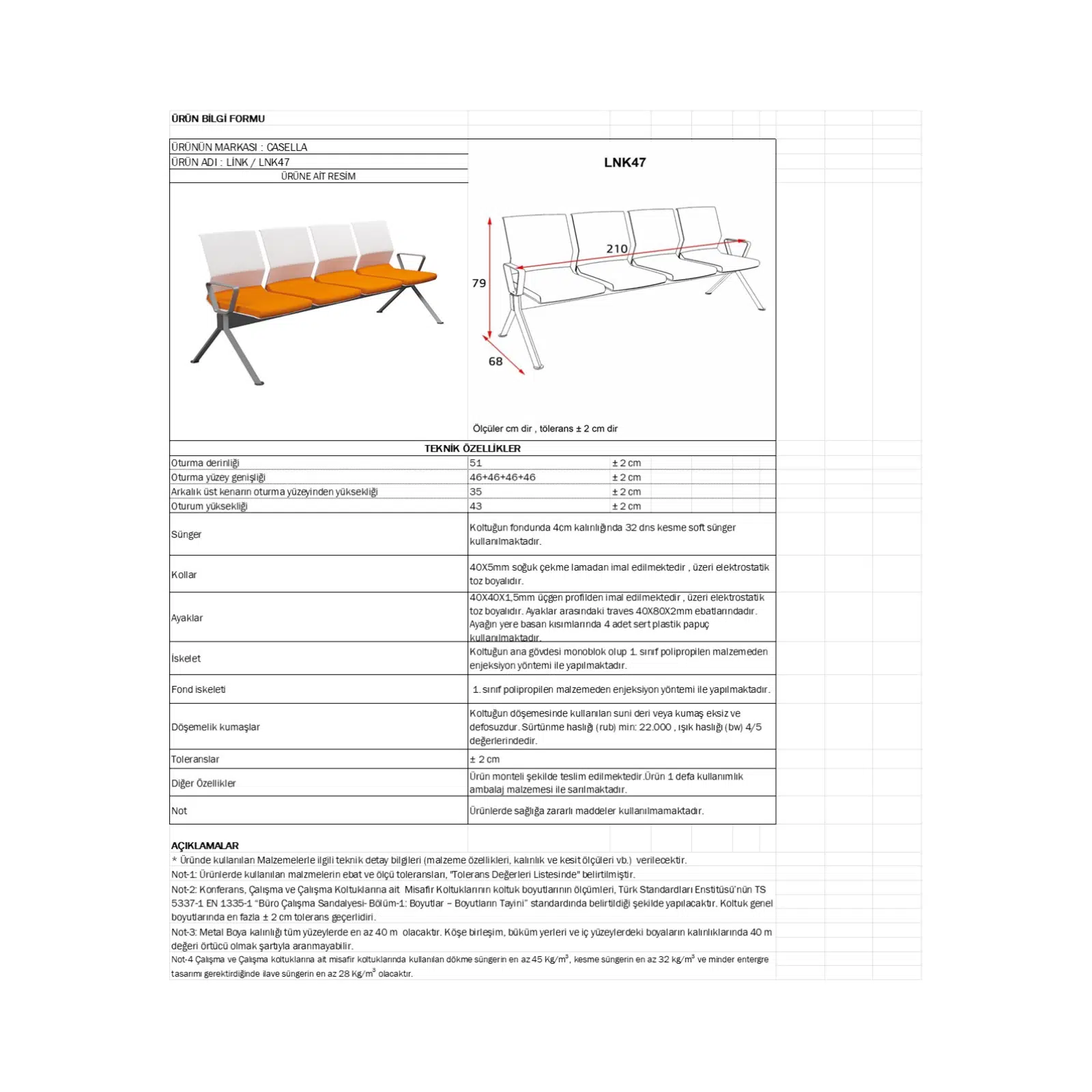 Ürün Tipi: Dörtlü bekleme koltuğu