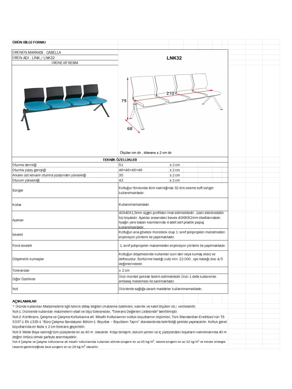 Casella Link Bekleme Koltuğu (LNK 32), banko önleri, hastane & klinikler, kamu kurumları, okul ve kurumsal lobilerde uzun ömürlü kullanım için tasarlanmış modern bir bekleme koltuğu / sıra bankıdır. Sağlam metal gövde, kolay temizlenebilir oturum–sırt yüzeyleri ve modüler yapısıyla yoğun kullanıma uygun, dayanıklı ve şık bir çözüm sunar.