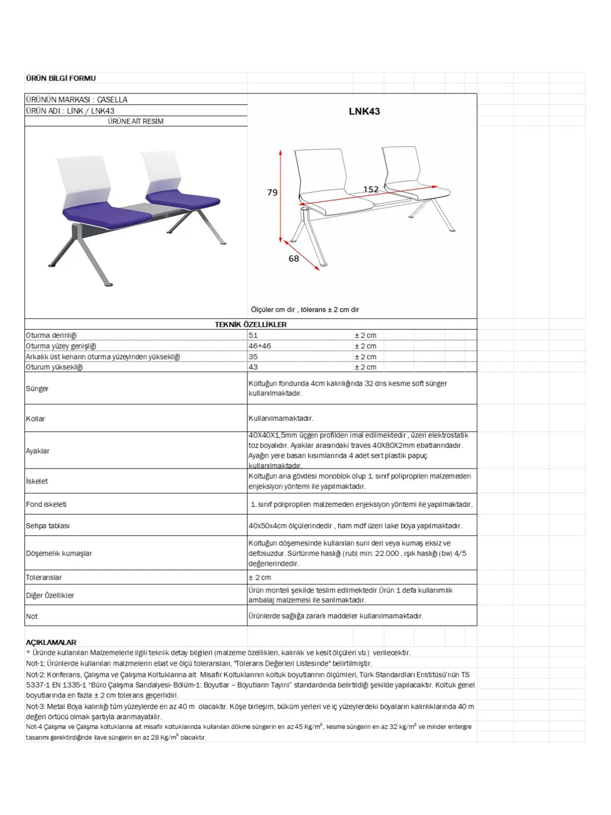 Casella Link Bekleme Koltuğu (LNK 43), banko önleri, hastane & klinikler, kamu kurumları, okul ve kurumsal lobilerde uzun ömürlü kullanım için tasarlanmış modern bir bekleme koltuğu / sıra bankıdır. Sağlam metal gövde, kolay temizlenebilir oturum–sırt yüzeyleri ve modüler yapısıyla yoğun kullanıma uygun, dayanıklı ve şık bir çözüm sunar.