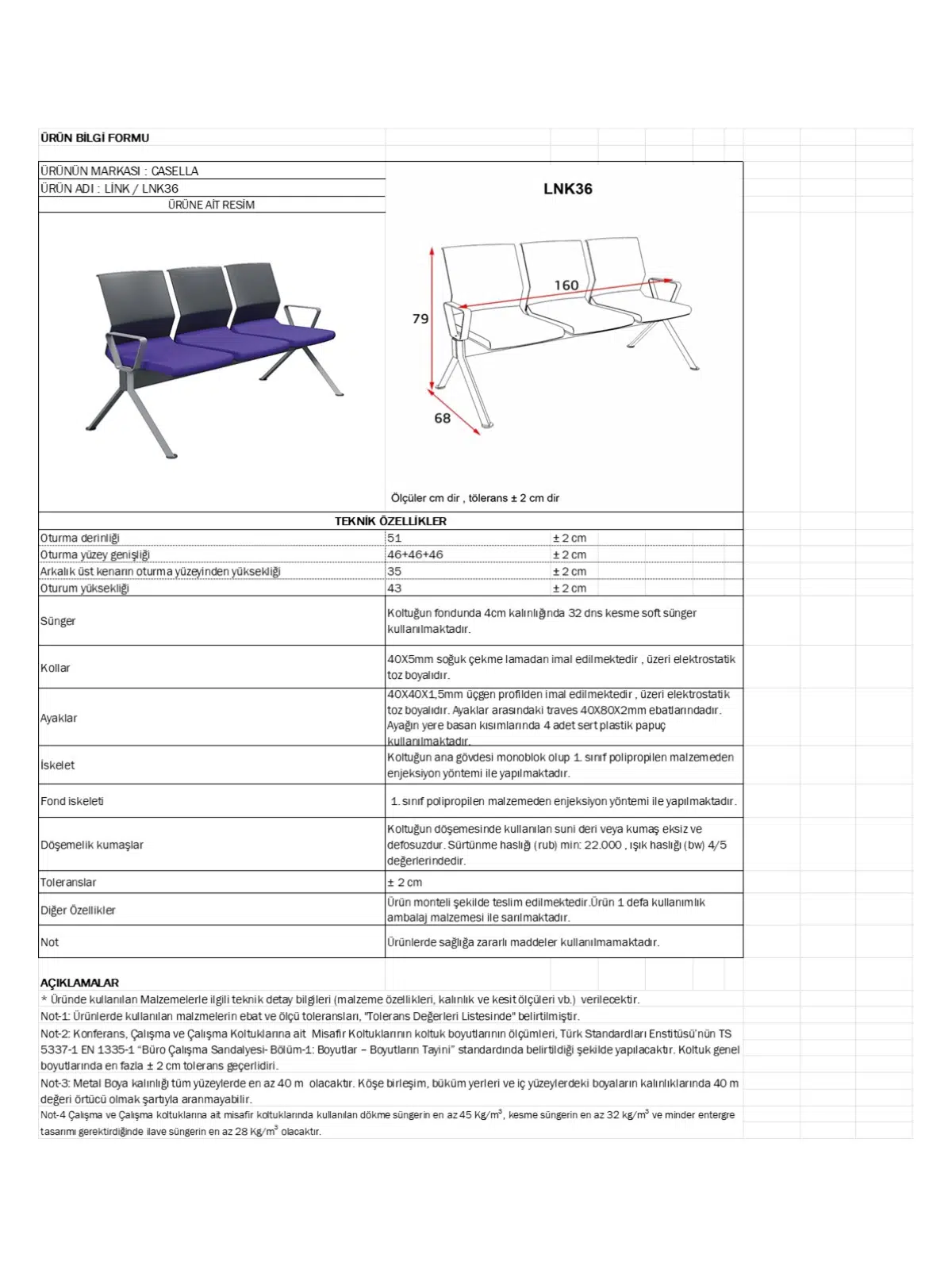 Casella Link Bekleme Koltuğu (LNK 36), banko önleri, hastane & klinikler, kamu kurumları, okul ve kurumsal lobilerde uzun ömürlü kullanım için tasarlanmış modern bir bekleme koltuğu / sıra bankıdır. Sağlam metal gövde, kolay temizlenebilir oturum–sırt yüzeyleri ve modüler yapısıyla yoğun kullanıma uygun, dayanıklı ve şık bir çözüm sunar.