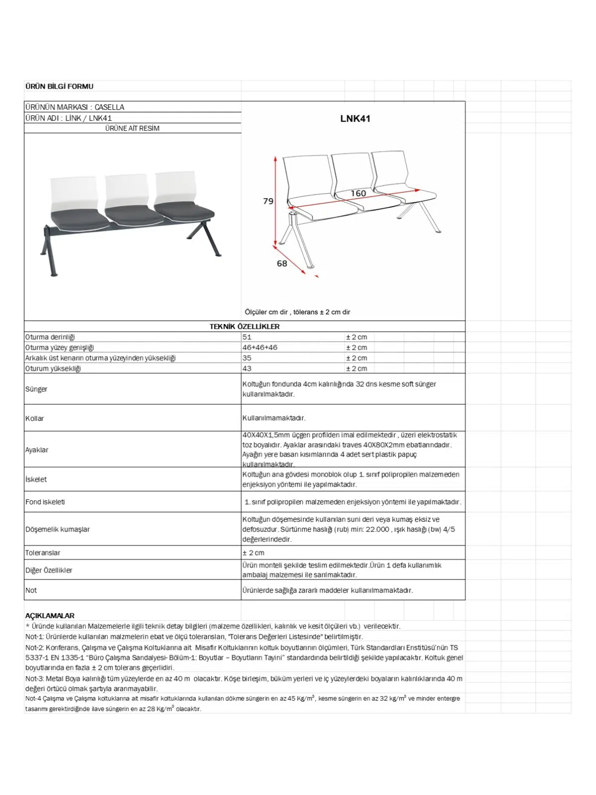 Casella Link Bekleme Koltuğu (LNK 41), banko önleri, hastane & klinikler, kamu kurumları, okul ve kurumsal lobilerde uzun ömürlü kullanım için tasarlanmış modern bir bekleme koltuğu / sıra bankıdır. Sağlam metal gövde, kolay temizlenebilir oturum–sırt yüzeyleri ve modüler yapısıyla yoğun kullanıma uygun, dayanıklı ve şık bir çözüm sunar.
