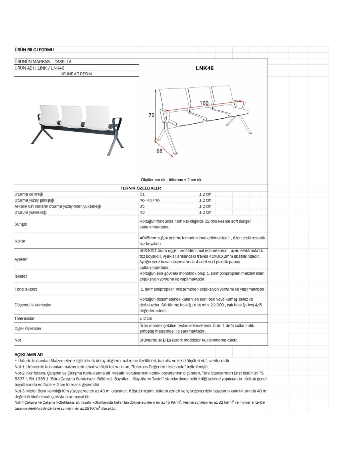 Casella Link Bekleme Koltuğu (LNK 46), banko önleri, hastane & klinikler, kamu kurumları, okul ve kurumsal lobilerde uzun ömürlü kullanım için tasarlanmış modern bir bekleme koltuğu / sıra bankıdır. Sağlam metal gövde, kolay temizlenebilir oturum–sırt yüzeyleri ve modüler yapısıyla yoğun kullanıma uygun, dayanıklı ve şık bir çözüm sunar.