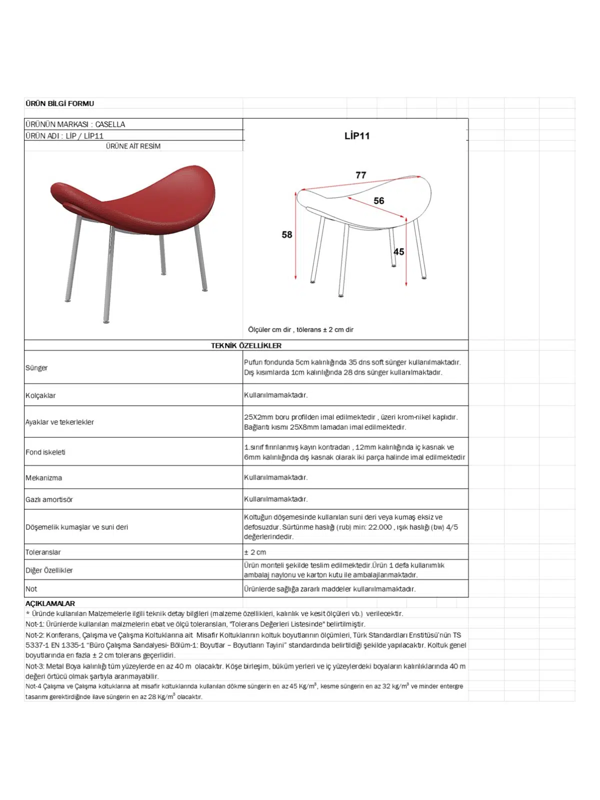 | Döşeme | Gerçek deri / suni deri / leke tutmaz kumaş |