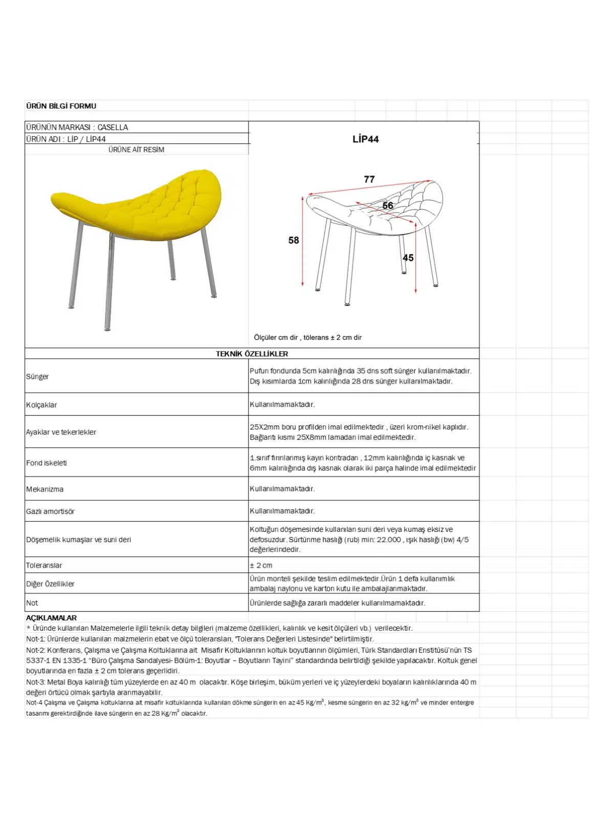 Casella Lip Ofis Berjeri (LİP 44), yönetici misafir alanları, lounge/bekleme bölümleri, resepsiyon ve showroom’lar için tasarlanmış modern bir ofis berjeridir. Yüksek yoğunluklu sünger, sağlam iskelet ve kolay temizlenebilir döşeme ile uzun oturumlarda konfor sunar; zarif çizgileriyle mekâna prestijli ve profesyonel bir görünüm katar.