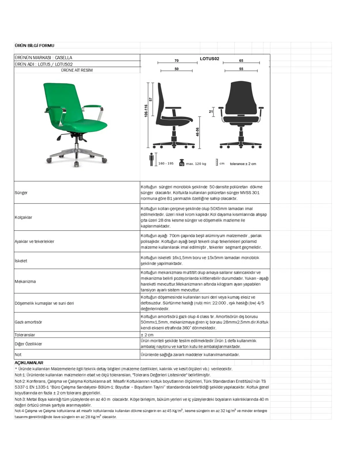 | Mekanizma | Amortisörlü yükseklik Ve sırt eğimi ayarı |