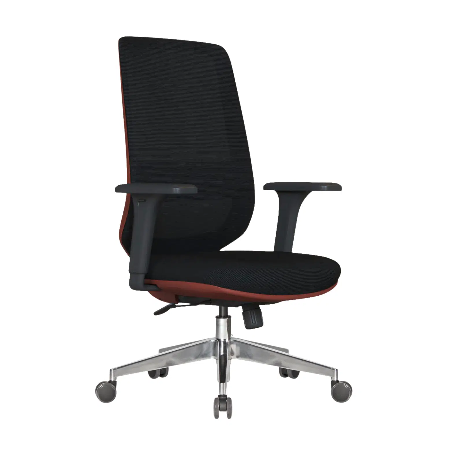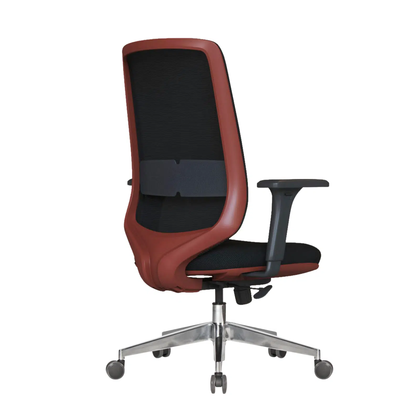 Sıcak kiremit tonu ile modern siyah detayları bir araya getiren kiremit plastik gövdeli, siyah ayarlı kollu, alüminyum ayaklı multi tilt mekanizmalı ofis koltuğu, ofis alanlarına hem şıklık hem de profesyonel bir duruş kazandırır.