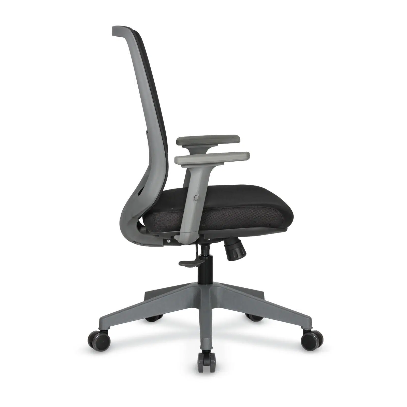 Gri renkli ayarlanabilir kolçaklar, kullanıcıya göre yükseklik ve pozisyon ayarı yapılmasına imkân tanıyarak omuz ve kol bölgesindeki baskıyı azaltır ve uzun süreli oturumlarda konforu artırır. Hafif ve sağlam plastik ayak yapısı ise kolay taşınabilirlik sunar ve yoğun kullanıma uygundur.