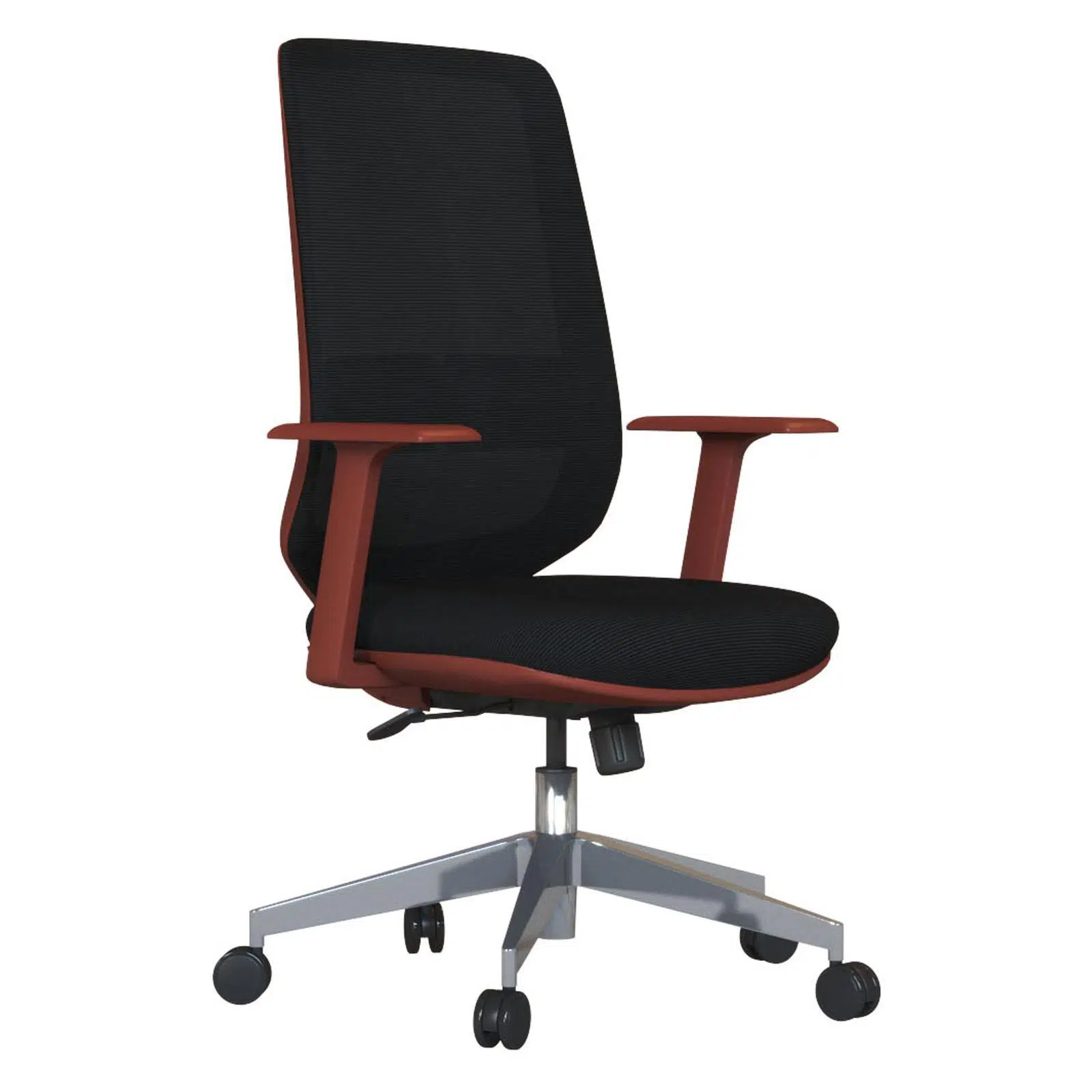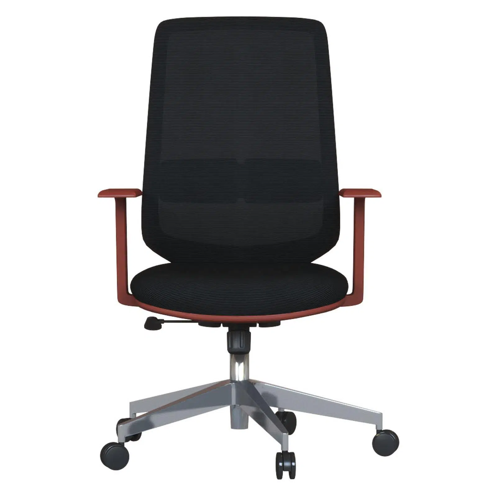 Kiremit renkli sabit kolçaklar, kol ve omuz bölgesine dengeli destek sunarak toplantılar sırasında daha stabil ve rahat bir oturma pozisyonu oluşturur. Hafif ve sağlam plastik ayak yapısı, kolay taşınabilirlik sunar ve yoğun kullanıma uygundur.