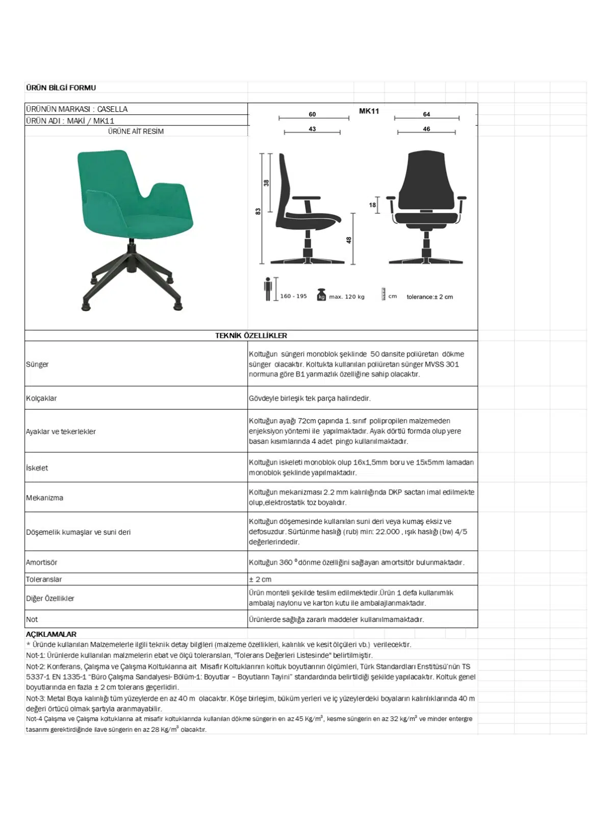 Casella Maki Döşemeli Ofis Koltuğu – Ergonomik, Şık ve Dayanıklı Ofis Koltuğu (MK 11)