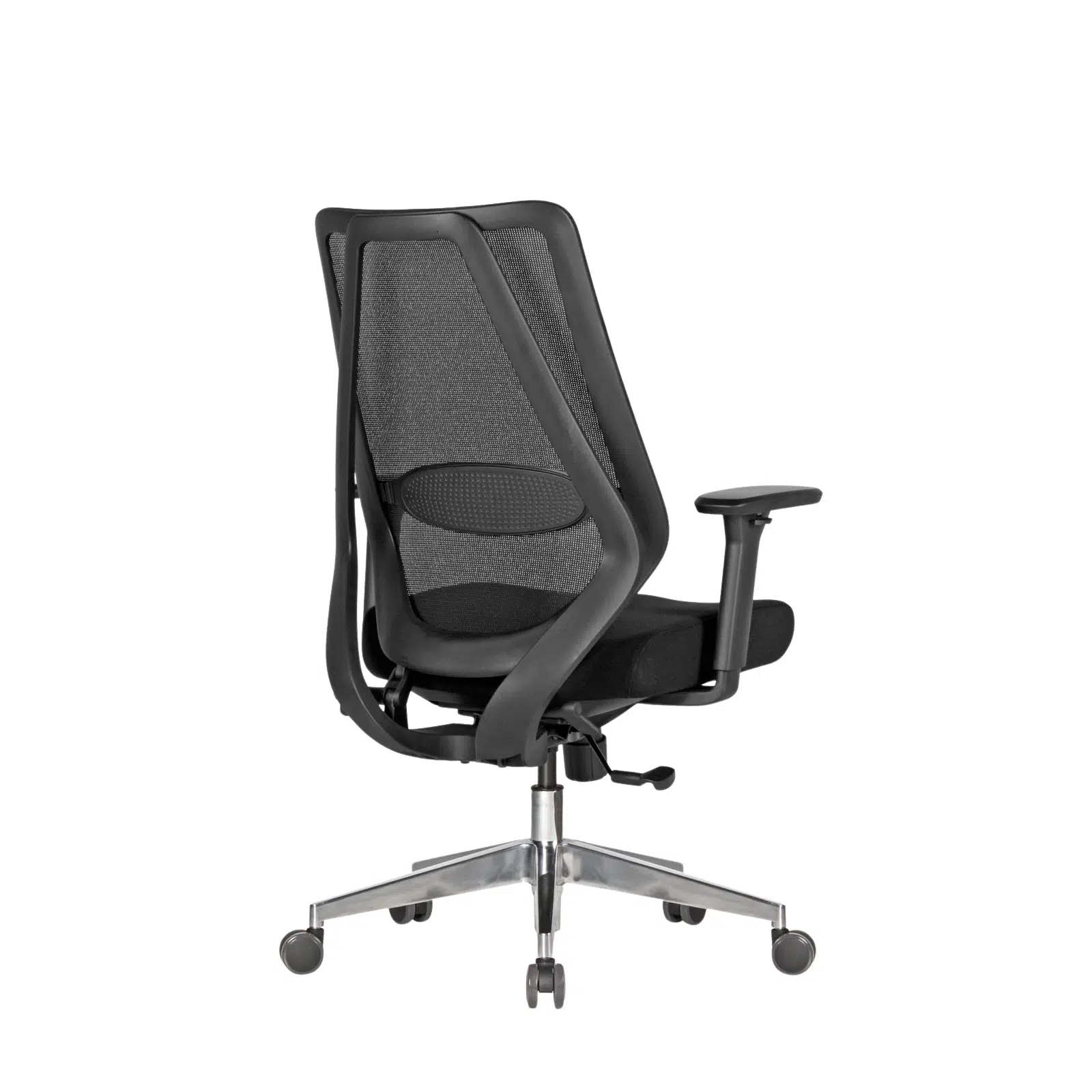 Modern tasarımı ve güçlü yapısıyla öne çıkan siyah plastik gövdeli, ayarlı kollu, alüminyum ayaklı multi tilt mekanizmalı ofis koltuğu, yoğun tempolu çalışma ortamları için hem şık hem de ergonomik bir çözüm sunar.