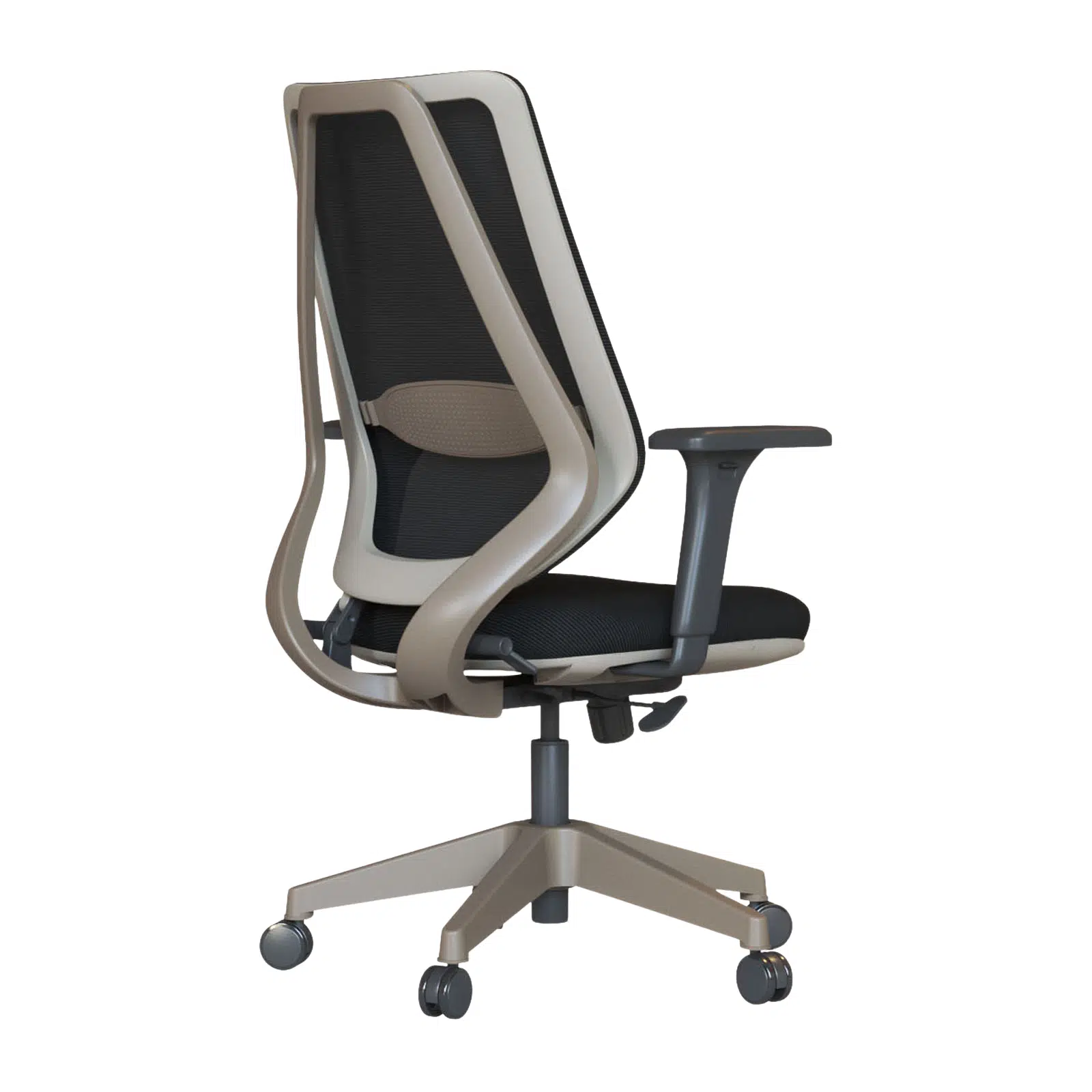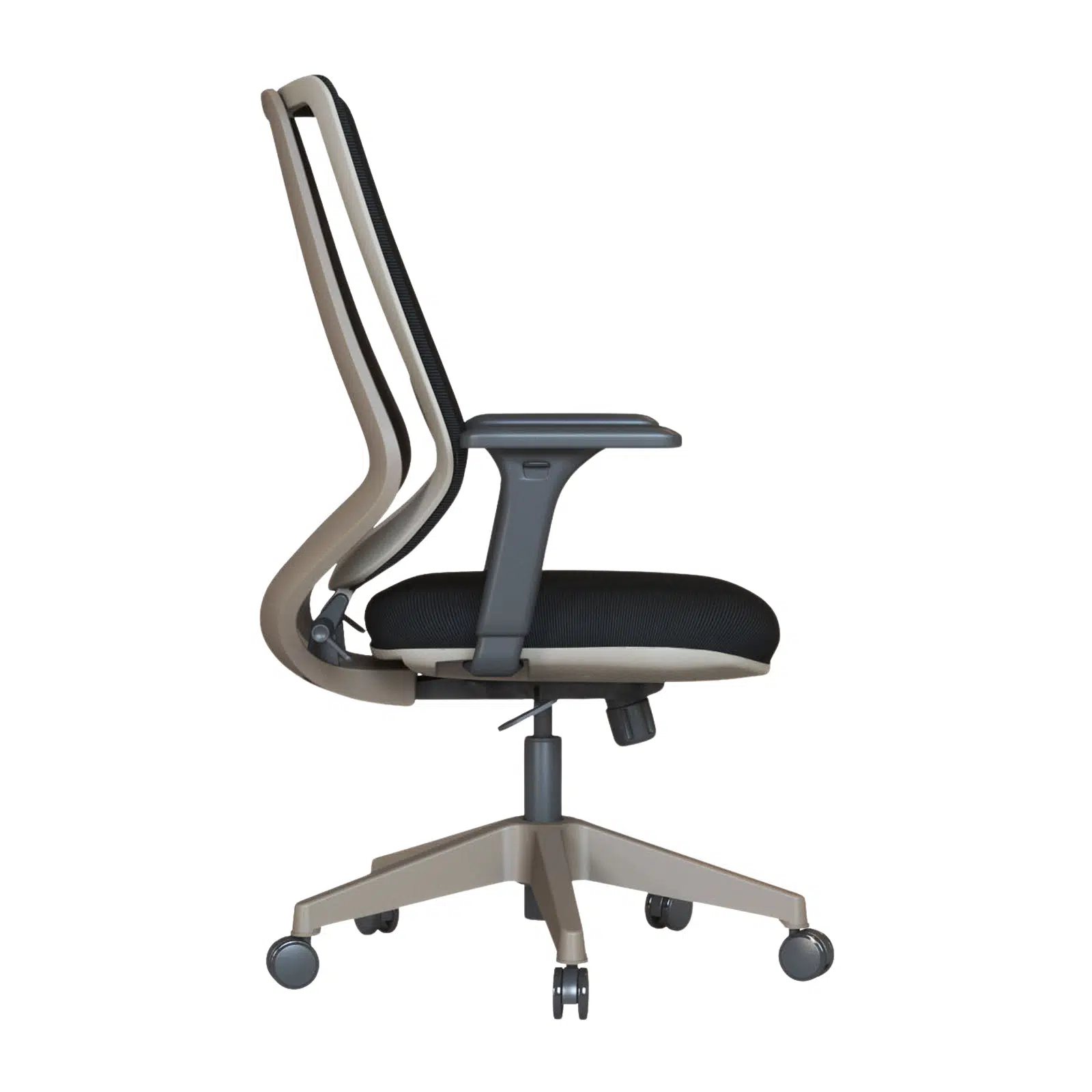 Cappuccino renkli plastik gövdesi çalışma alanlarına sıcak ve zarif bir görünüm kazandırırken, siyah ayarlı kolçaklar omuz ve kol bölgesindeki baskıyı azaltarak kişiye özel konfor sağlar. Dayanıklı plastik ayak yapısı hafiflik ve uzun ömürlü kullanım avantajı sunar.